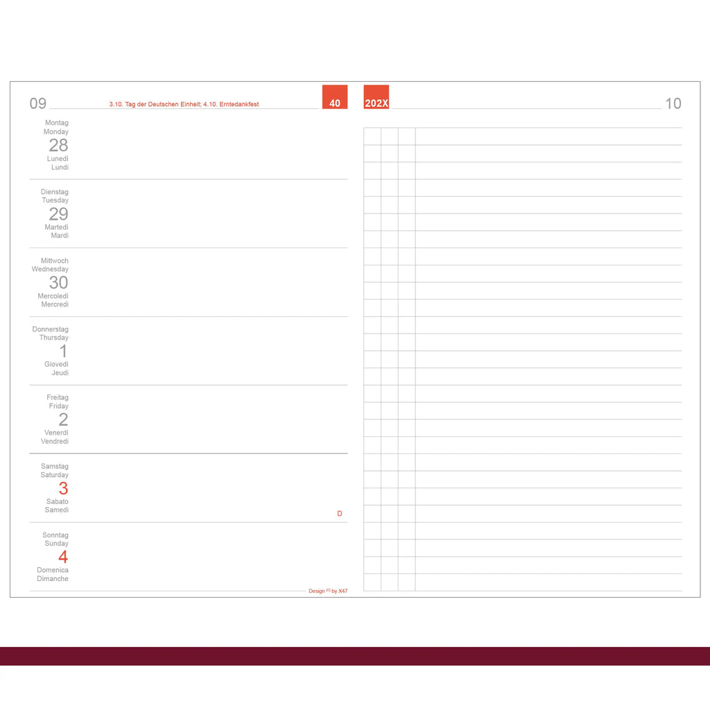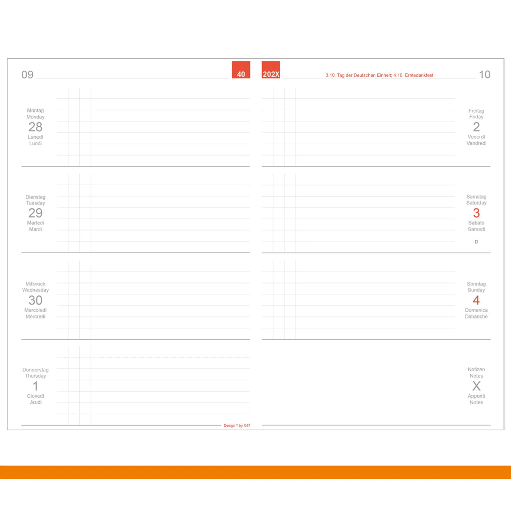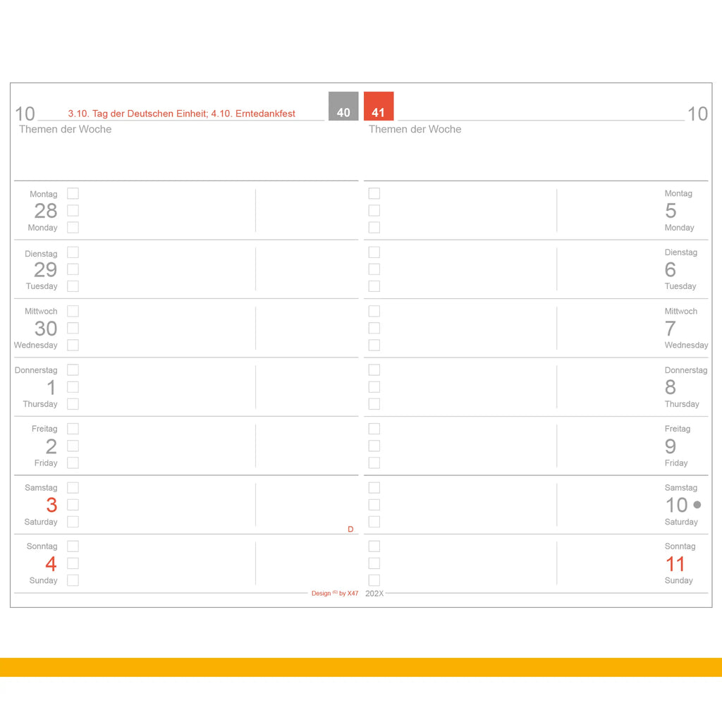 Der Wochenkalender Classic bietet eine klare und bewährte Struktur: eine Woche auf zwei Seiten.