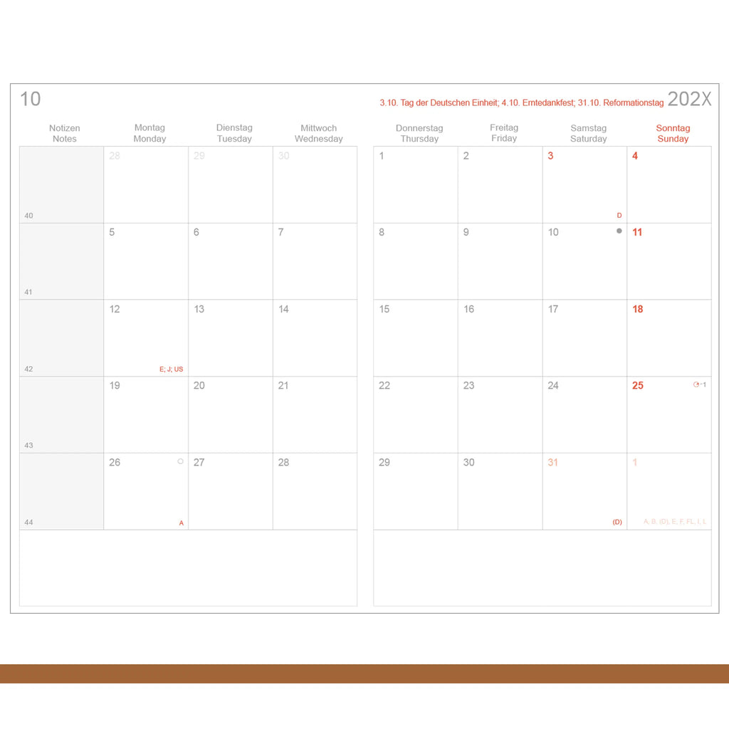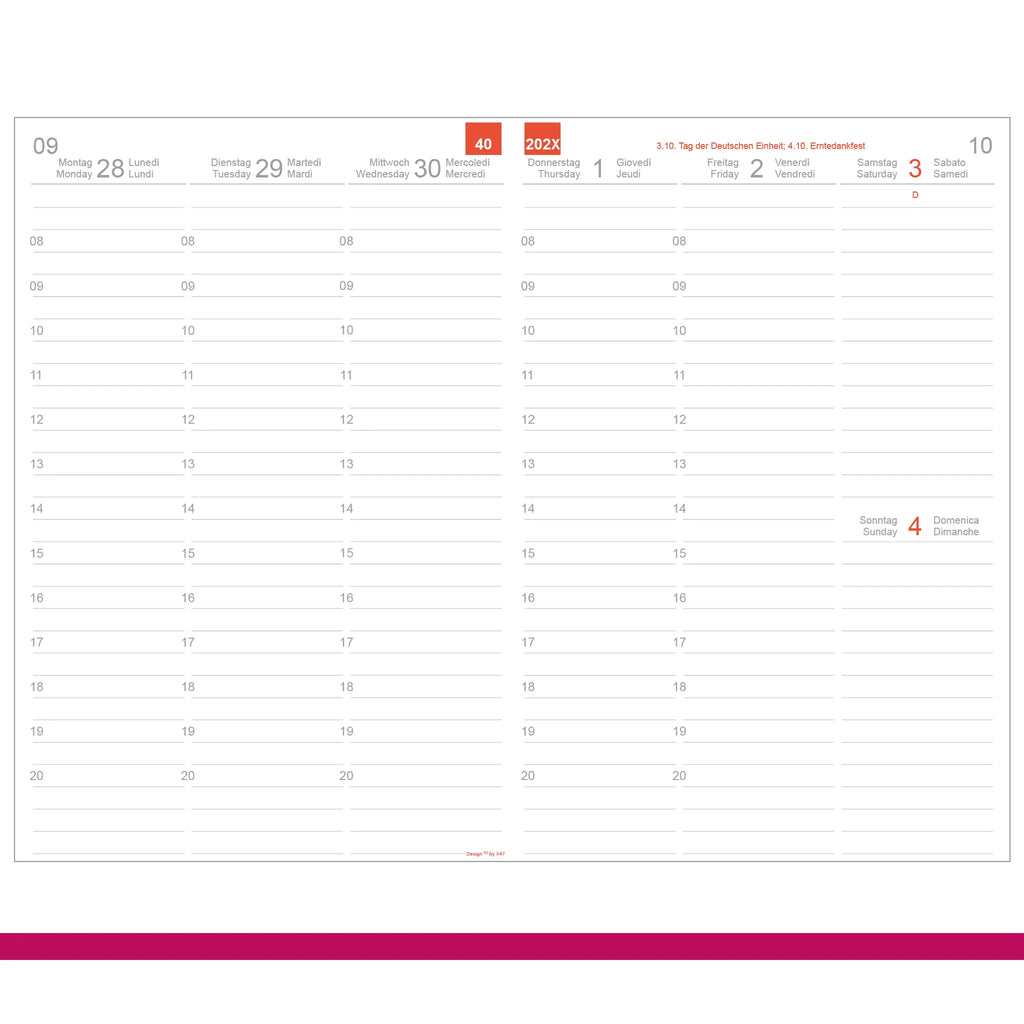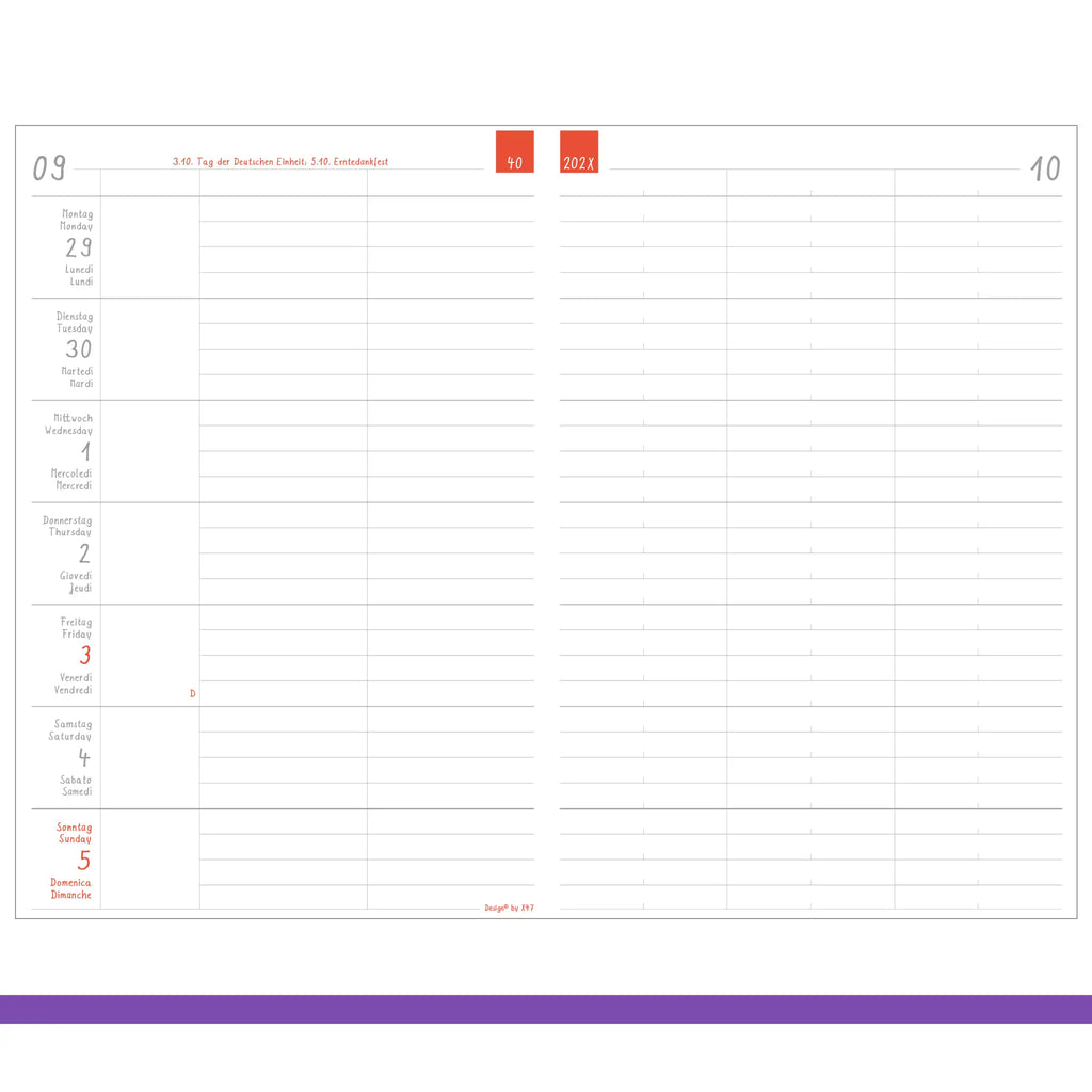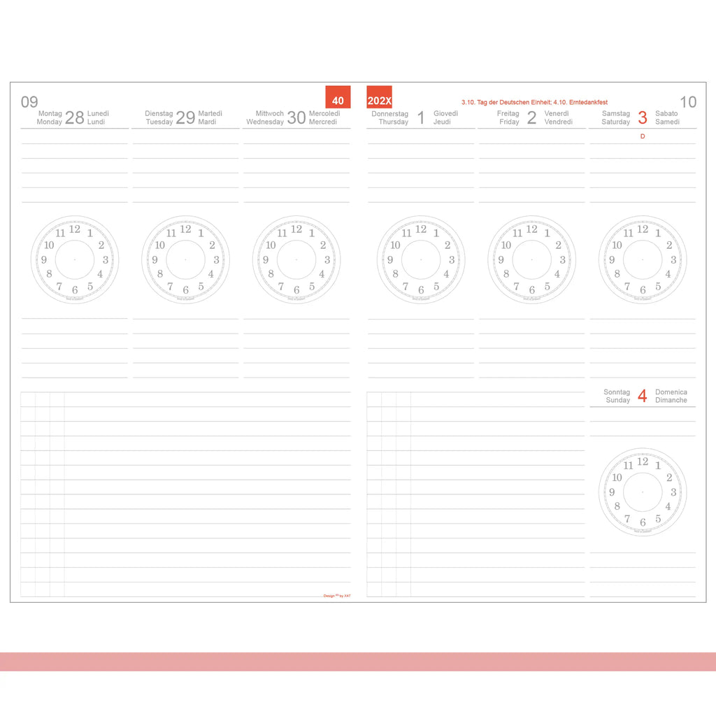 Der Wochenkalender Classic bietet eine klare und bewährte Struktur: eine Woche auf zwei Seiten.