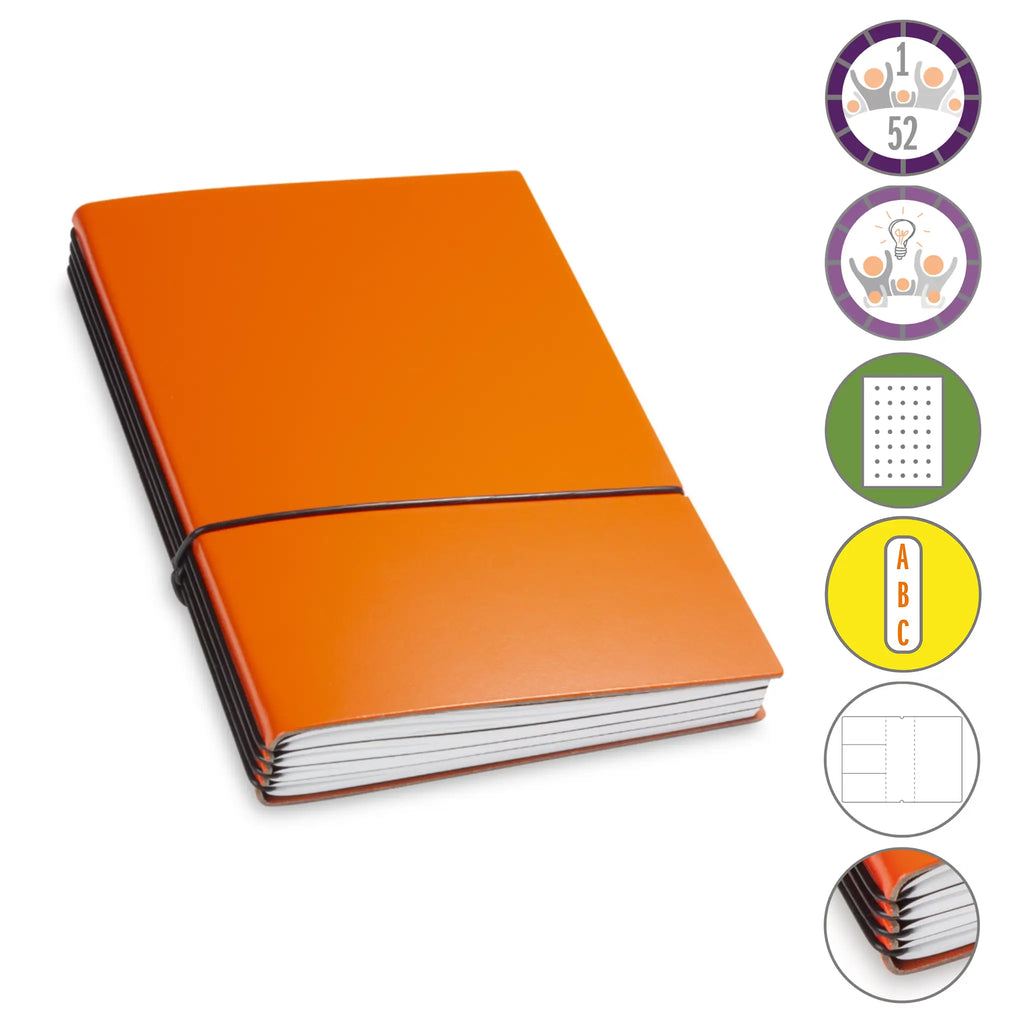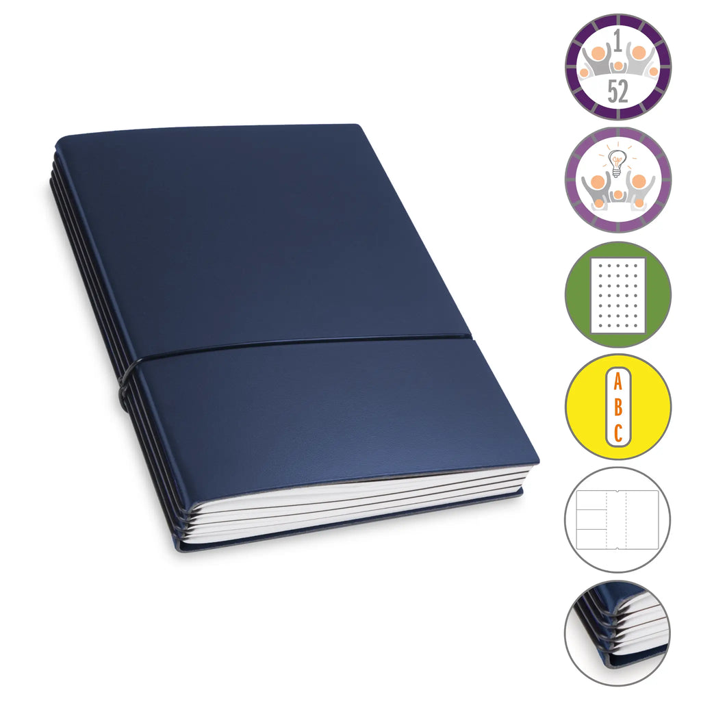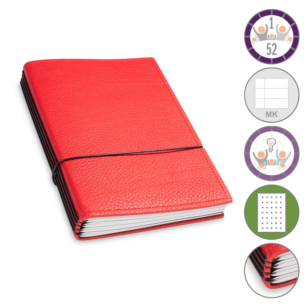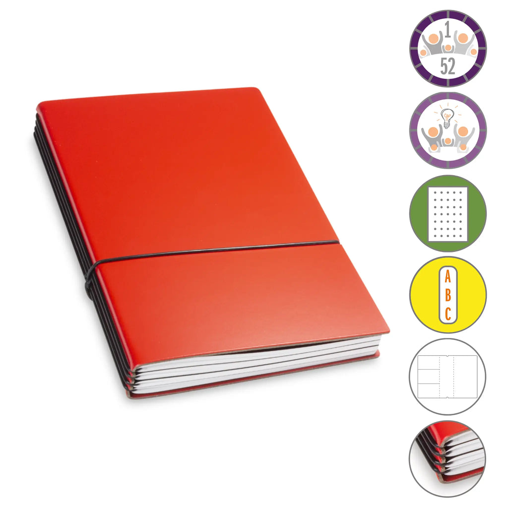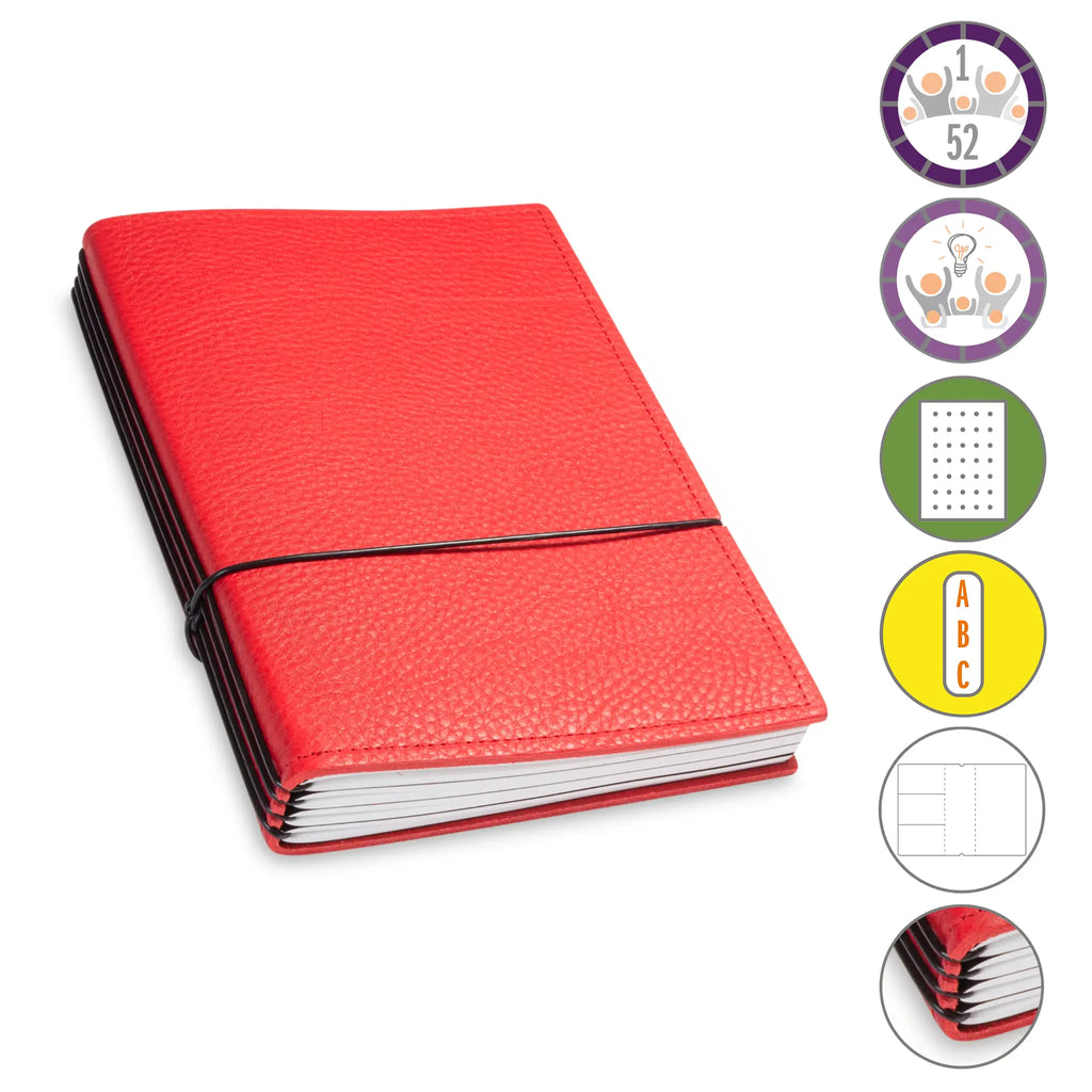 Er besteht aus einem aktuellen Teil (dem Kalender) und einem dauerhaften Teil mit dem Familien-Ideen-Buch, Ihrem Notizbuch und natürlich dem Adressregister.