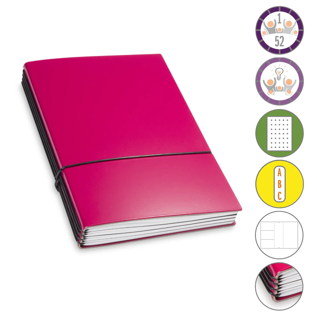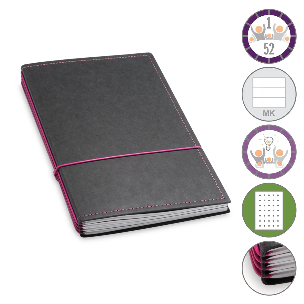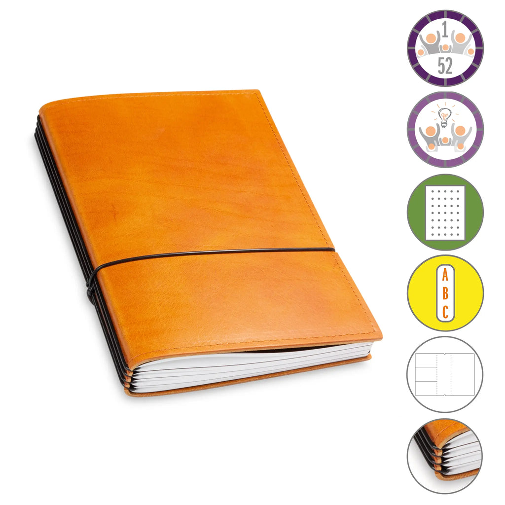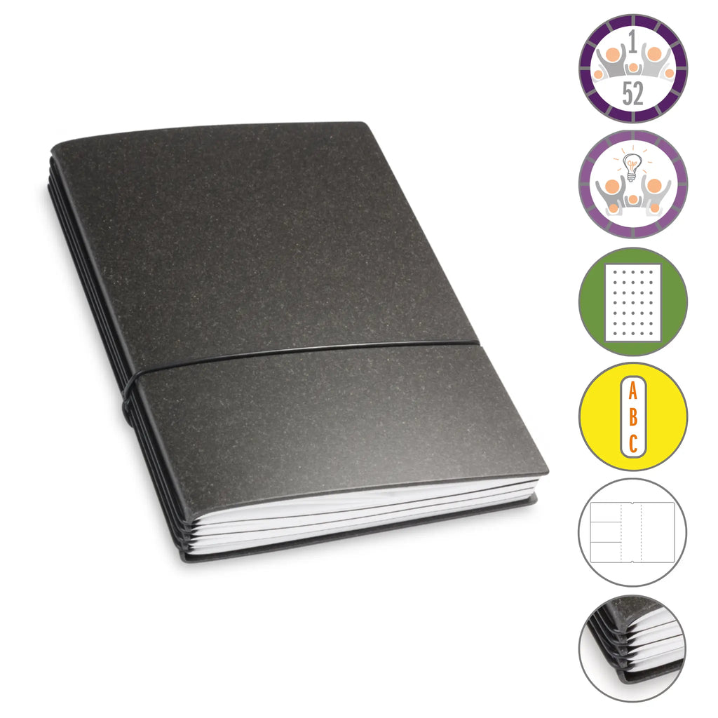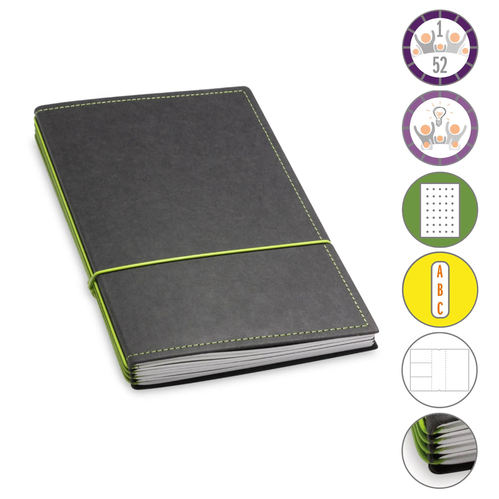 Er besteht aus einem aktuellen Teil (dem Kalender) und einem dauerhaften Teil mit dem Familien-Ideen-Buch, Ihrem Notizbuch und natürlich dem Adressregister.