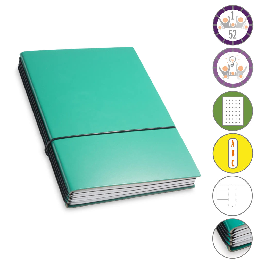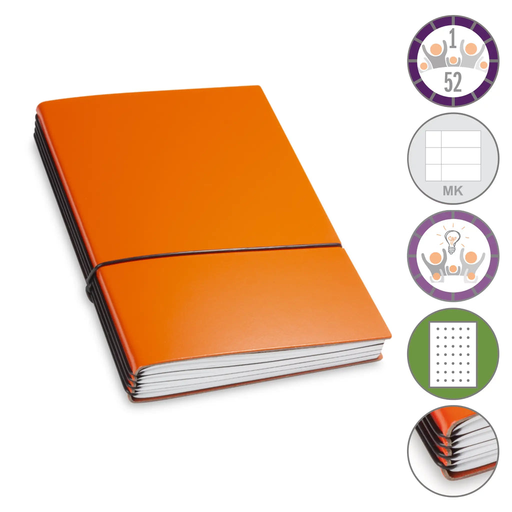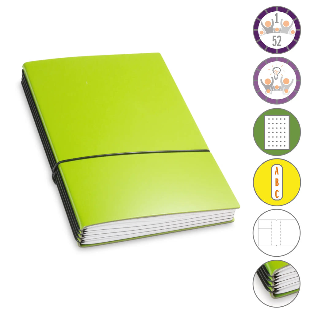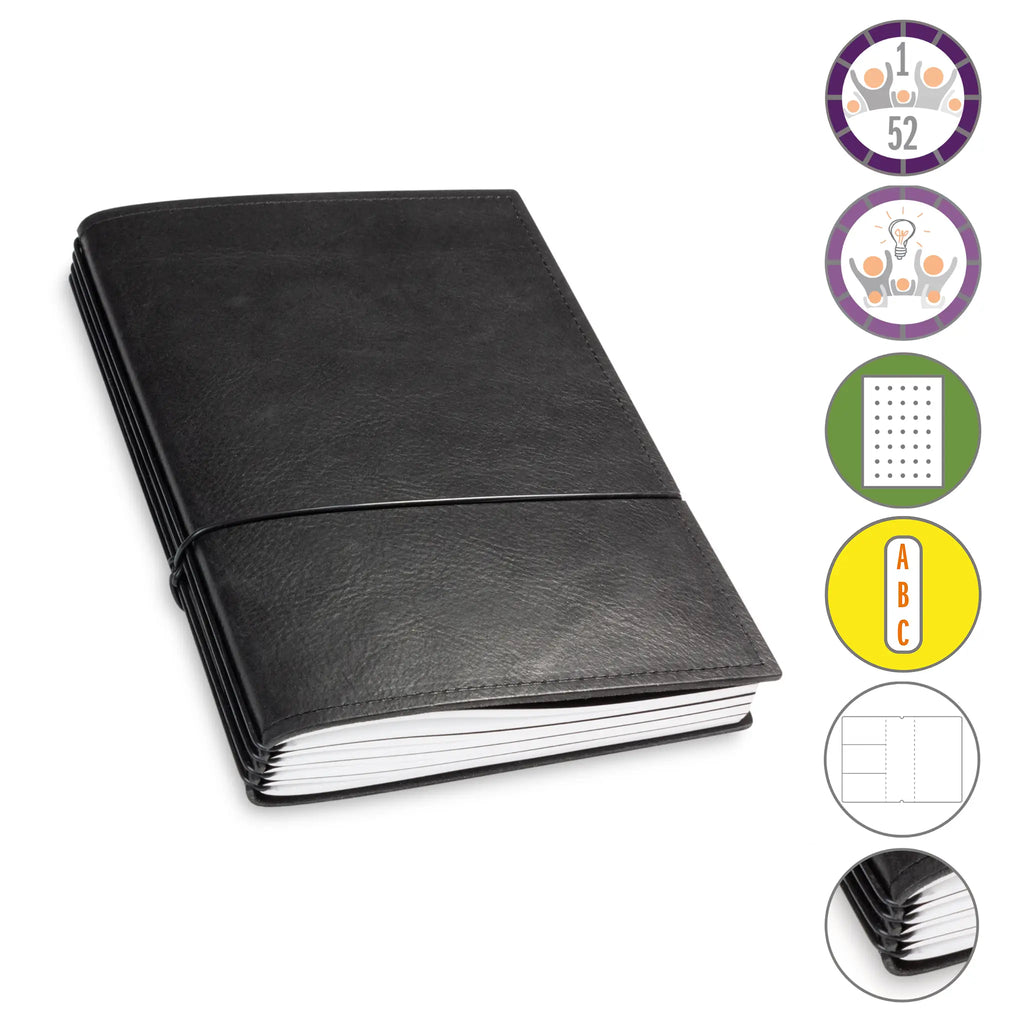 Er besteht aus einem aktuellen Teil (dem Kalender) und einem dauerhaften Teil mit dem Familien-Ideen-Buch, Ihrem Notizbuch und natürlich dem Adressregister.