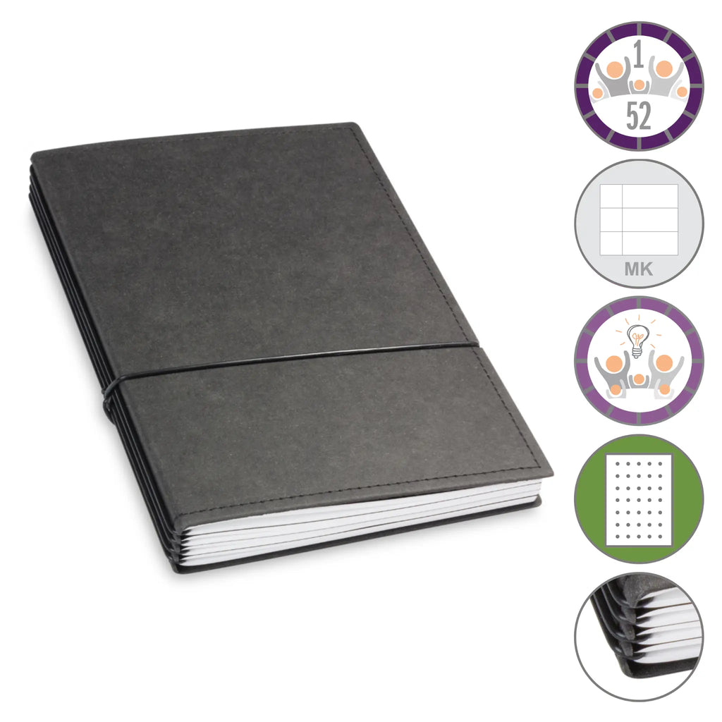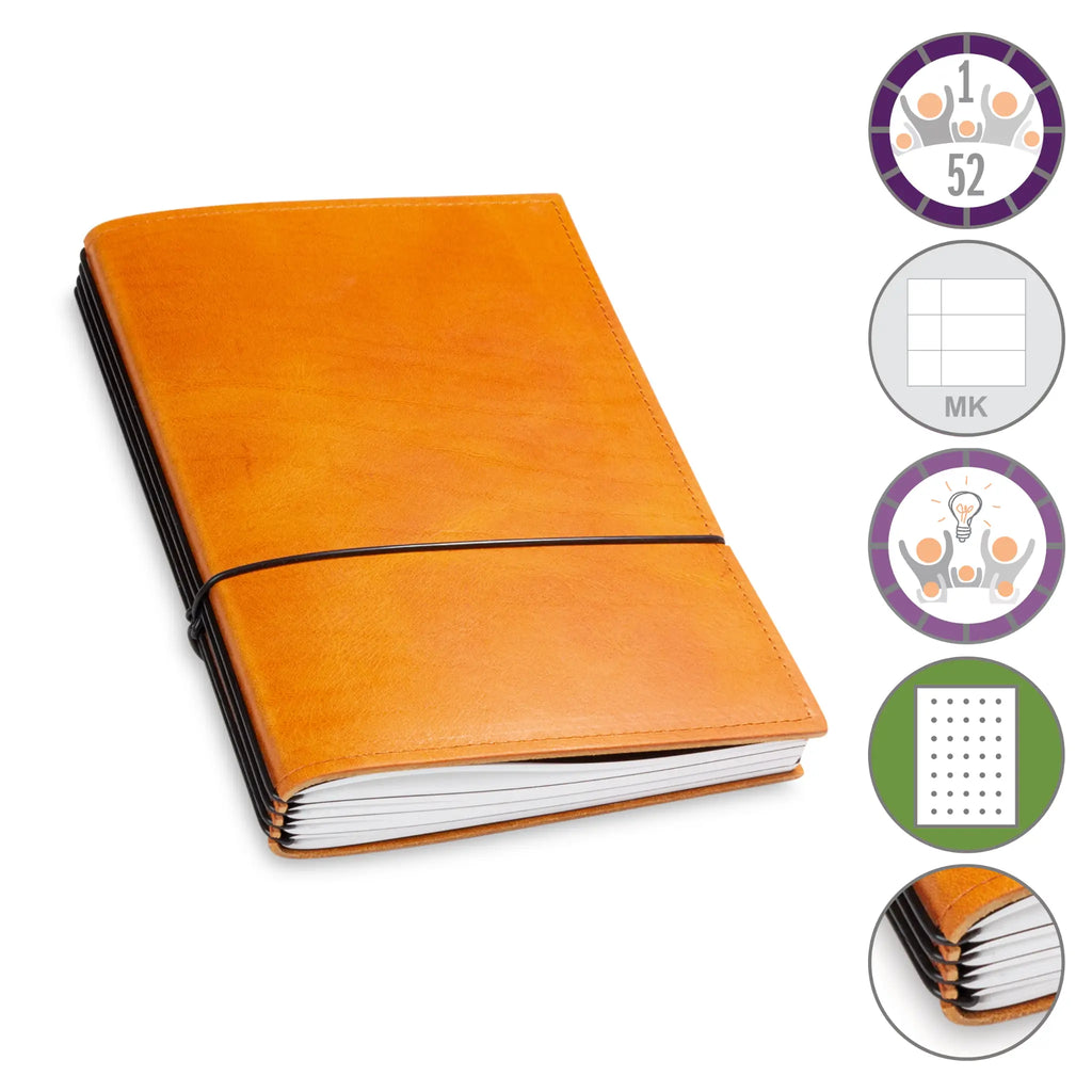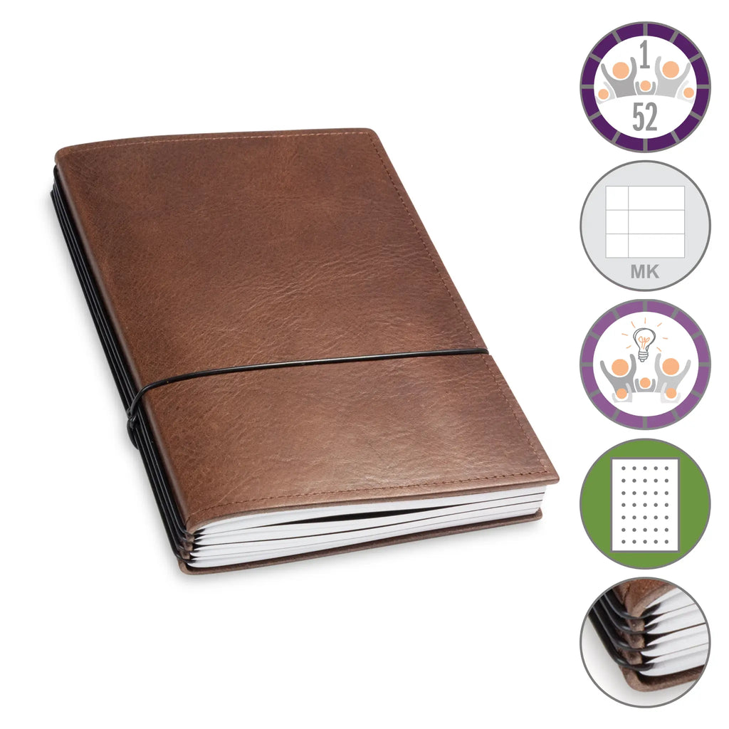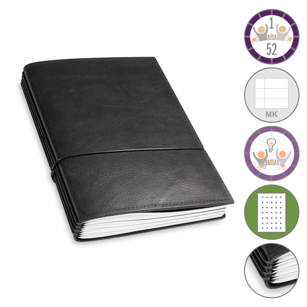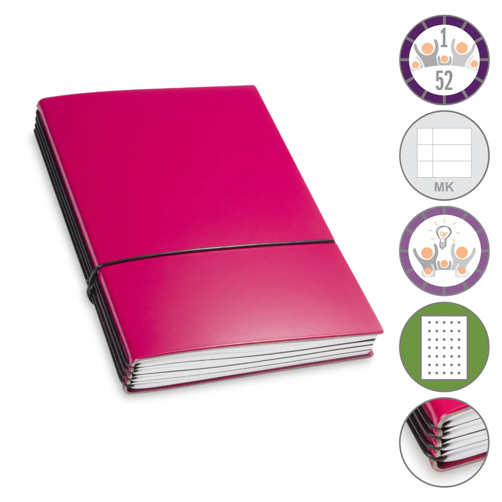 Er besteht aus einem aktuellen Teil (dem Kalender) und einem dauerhaften Teil mit dem Familien-Ideen-Buch, Ihrem Notizbuch und natürlich dem Adressregister.