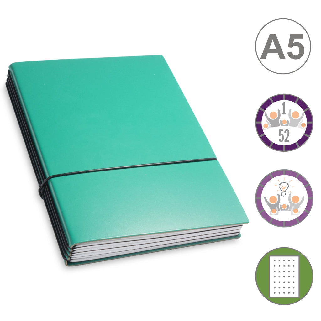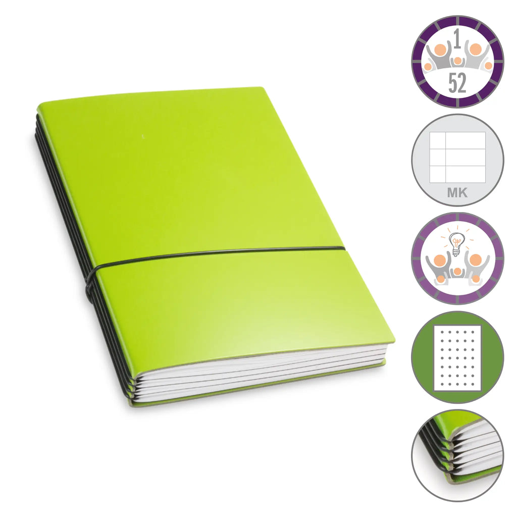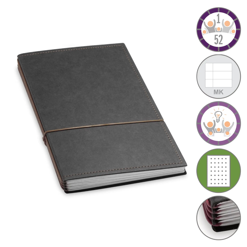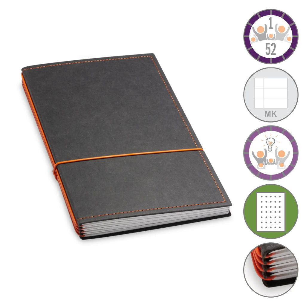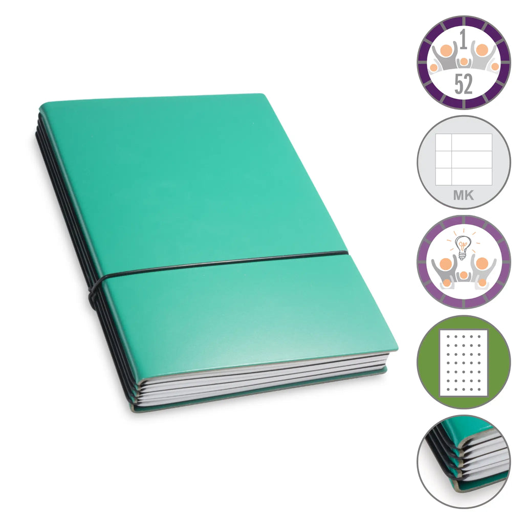 Er besteht aus einem aktuellen Teil (dem Kalender) und einem dauerhaften Teil mit dem Familien-Ideen-Buch, Ihrem Notizbuch und natürlich dem Adressregister.