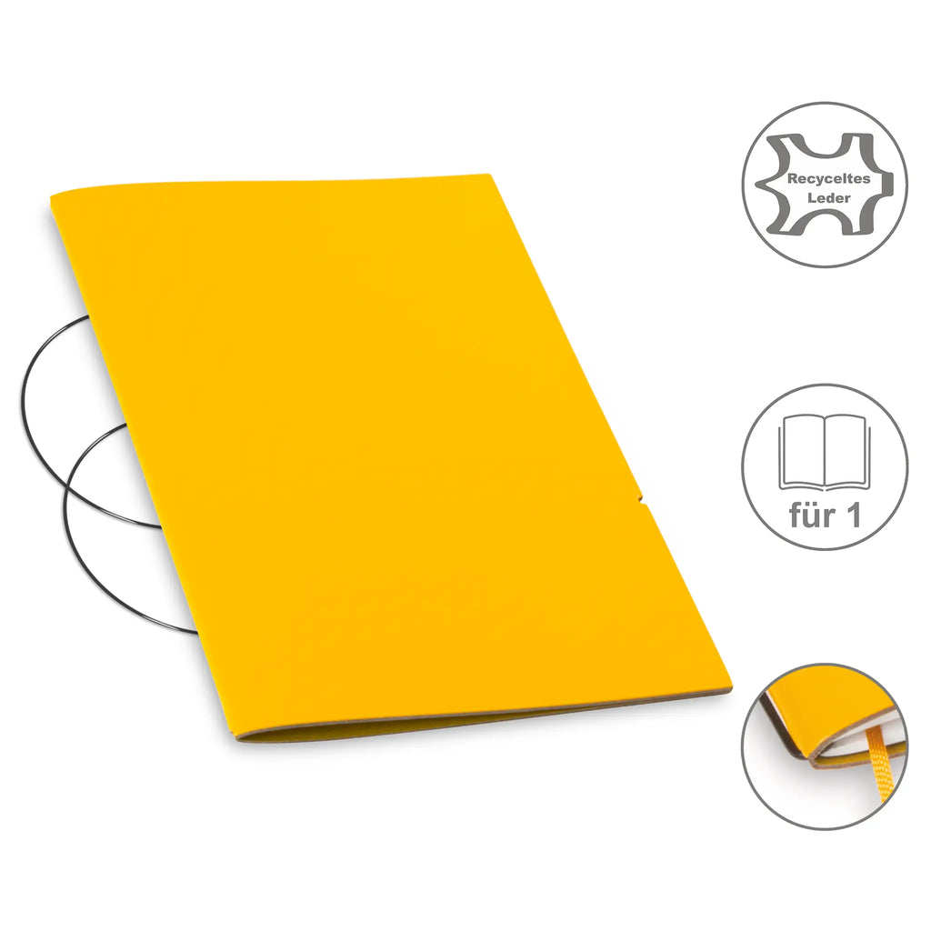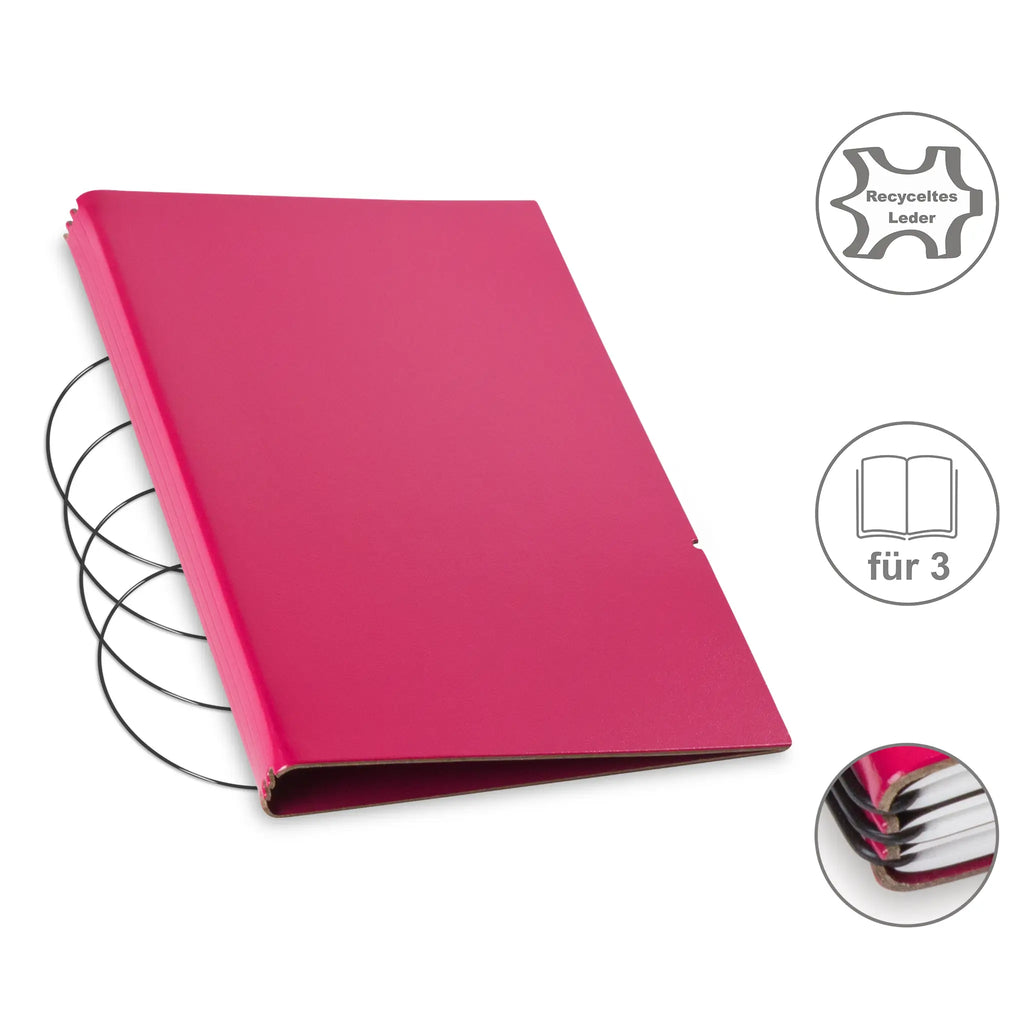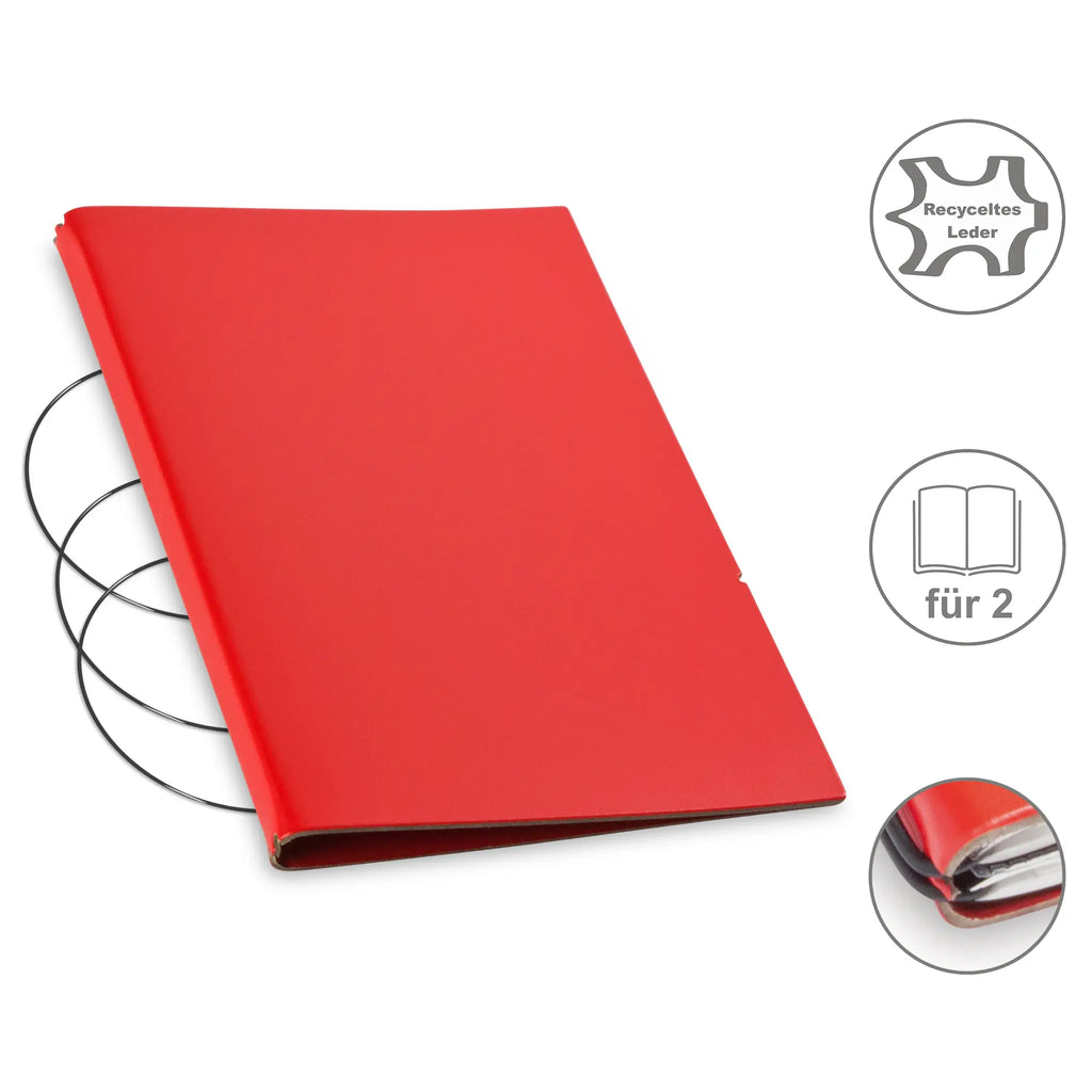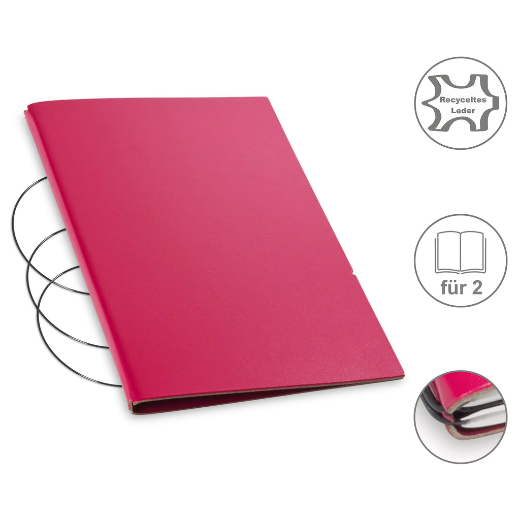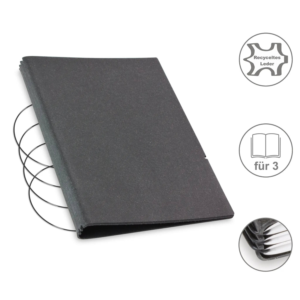 Diese nachhaltige A5 Hülle aus Leder oder hochwertigem Lederfasermaterial schützt Ihre Notizen stilvoll und umweltbewusst. Dank des durchdachten Designs können Sie den Inhalt jederzeit austauschen und die Hülle lange nutzen. Im Lieferumfang sind passende schwarze ElastiXs enthalten, die für sicheren Halt sorgen und Ihre Unterlagen fest zusammenhalten. So bleibt Ihre Organisation flexibel und elegant zugleich.