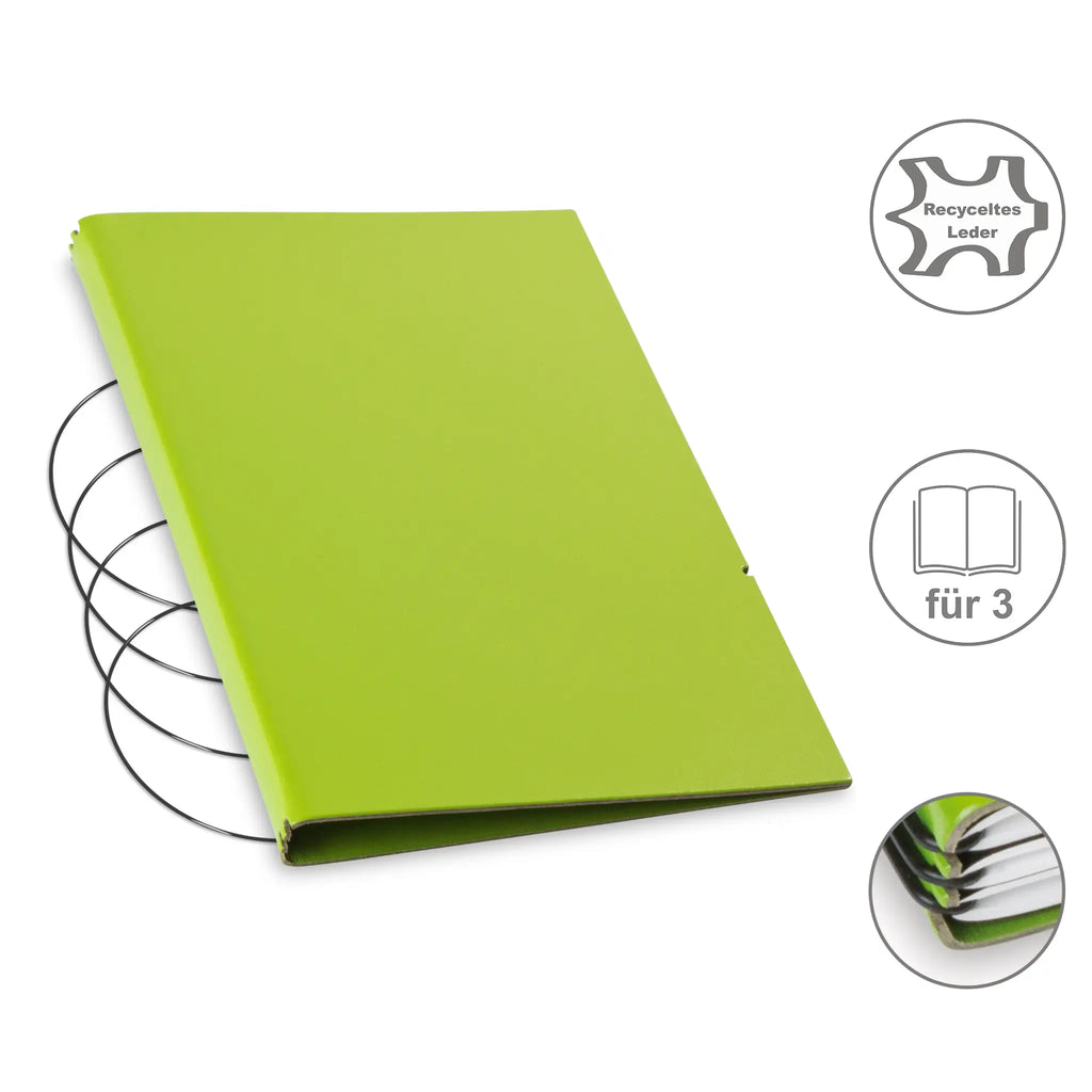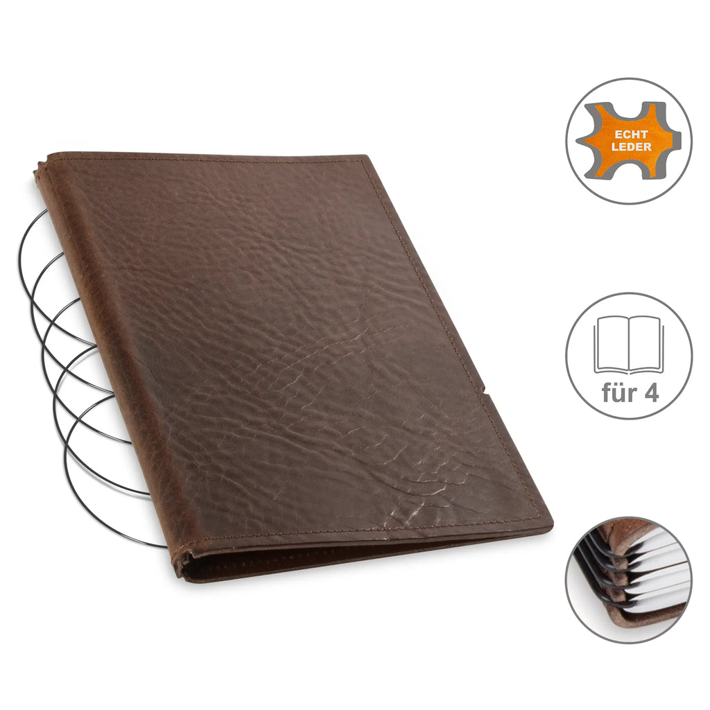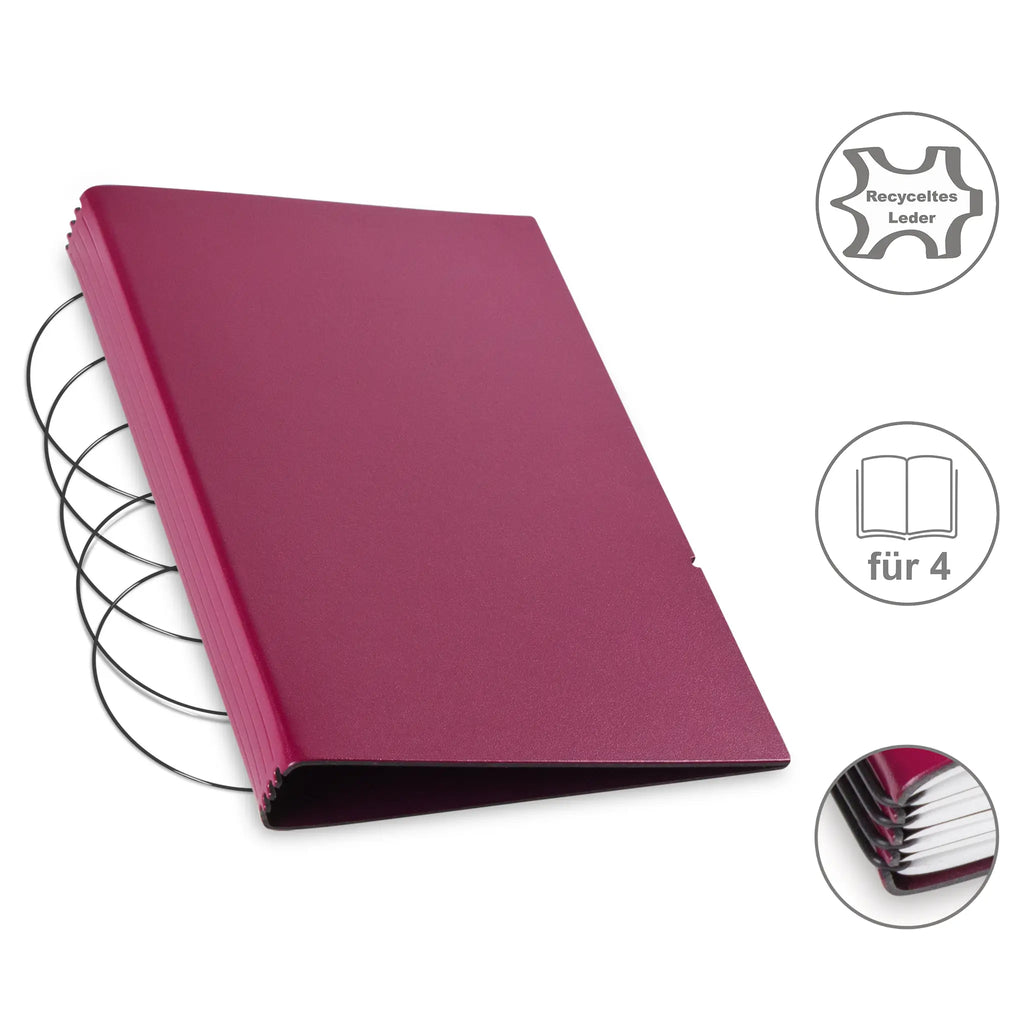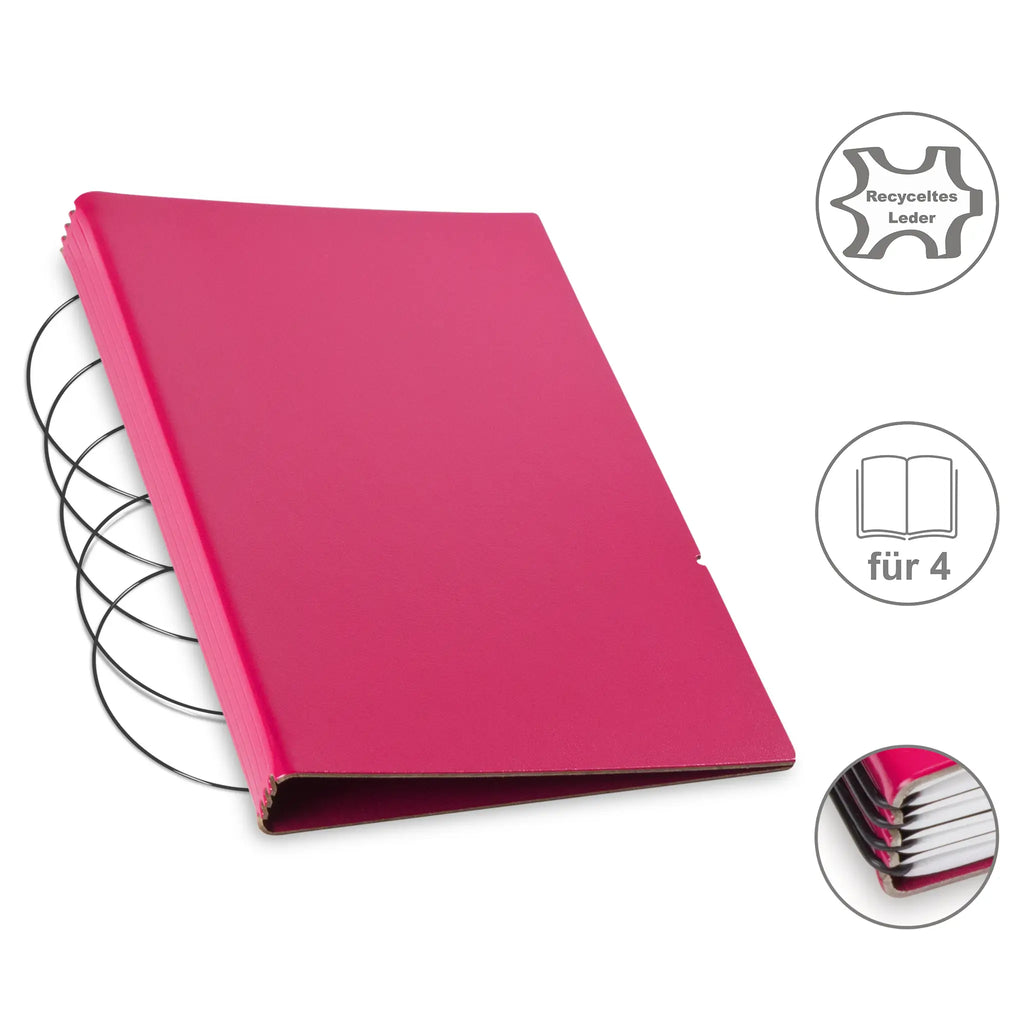 Diese nachhaltige A5 Hülle aus Leder oder hochwertigem Lederfasermaterial schützt Ihre Notizen stilvoll und umweltbewusst. Dank des durchdachten Designs können Sie den Inhalt jederzeit austauschen und die Hülle lange nutzen. Im Lieferumfang sind passende schwarze ElastiXs enthalten, die für sicheren Halt sorgen und Ihre Unterlagen fest zusammenhalten. So bleibt Ihre Organisation flexibel und elegant zugleich.