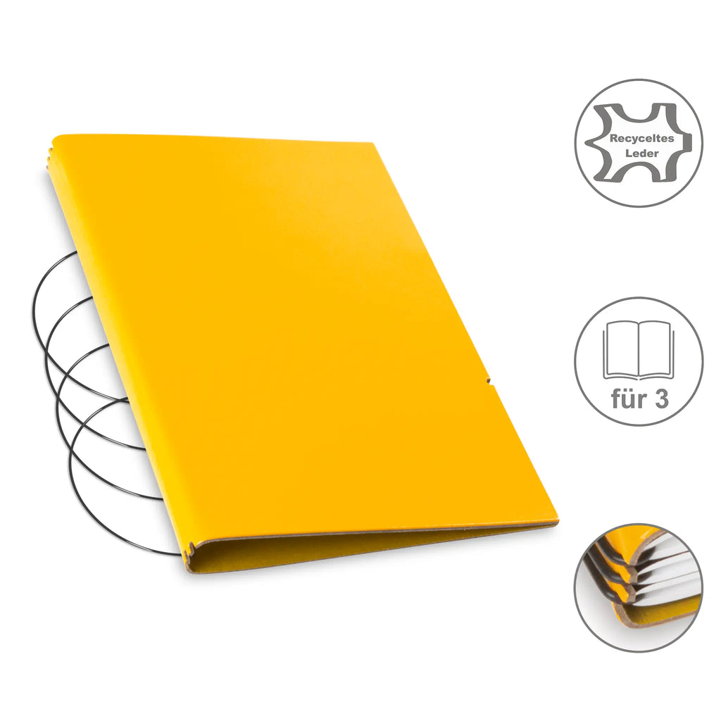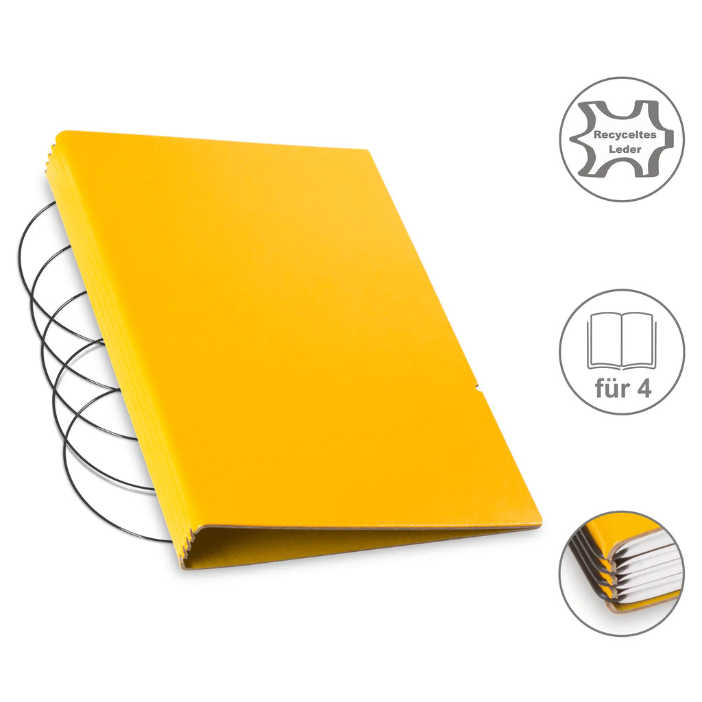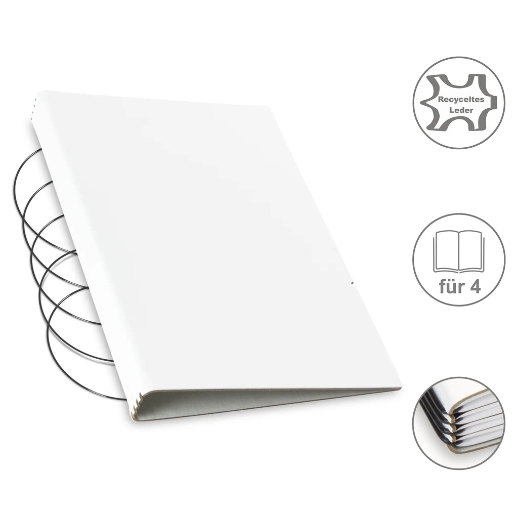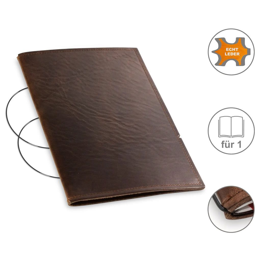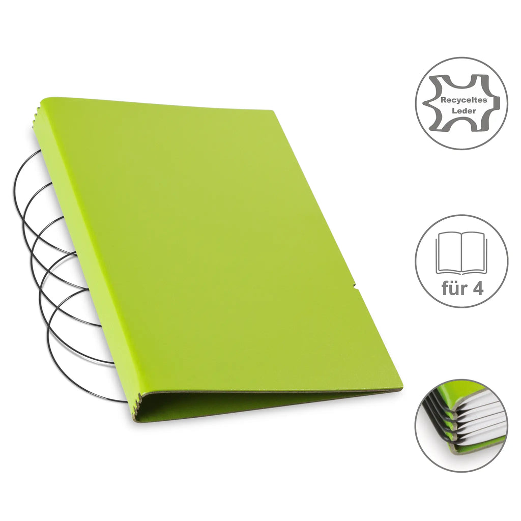 Diese nachhaltige A5 Hülle aus Leder oder hochwertigem Lederfasermaterial schützt Ihre Notizen stilvoll und umweltbewusst. Dank des durchdachten Designs können Sie den Inhalt jederzeit austauschen und die Hülle lange nutzen. Im Lieferumfang sind passende schwarze ElastiXs enthalten, die für sicheren Halt sorgen und Ihre Unterlagen fest zusammenhalten. So bleibt Ihre Organisation flexibel und elegant zugleich.