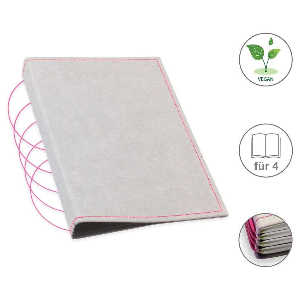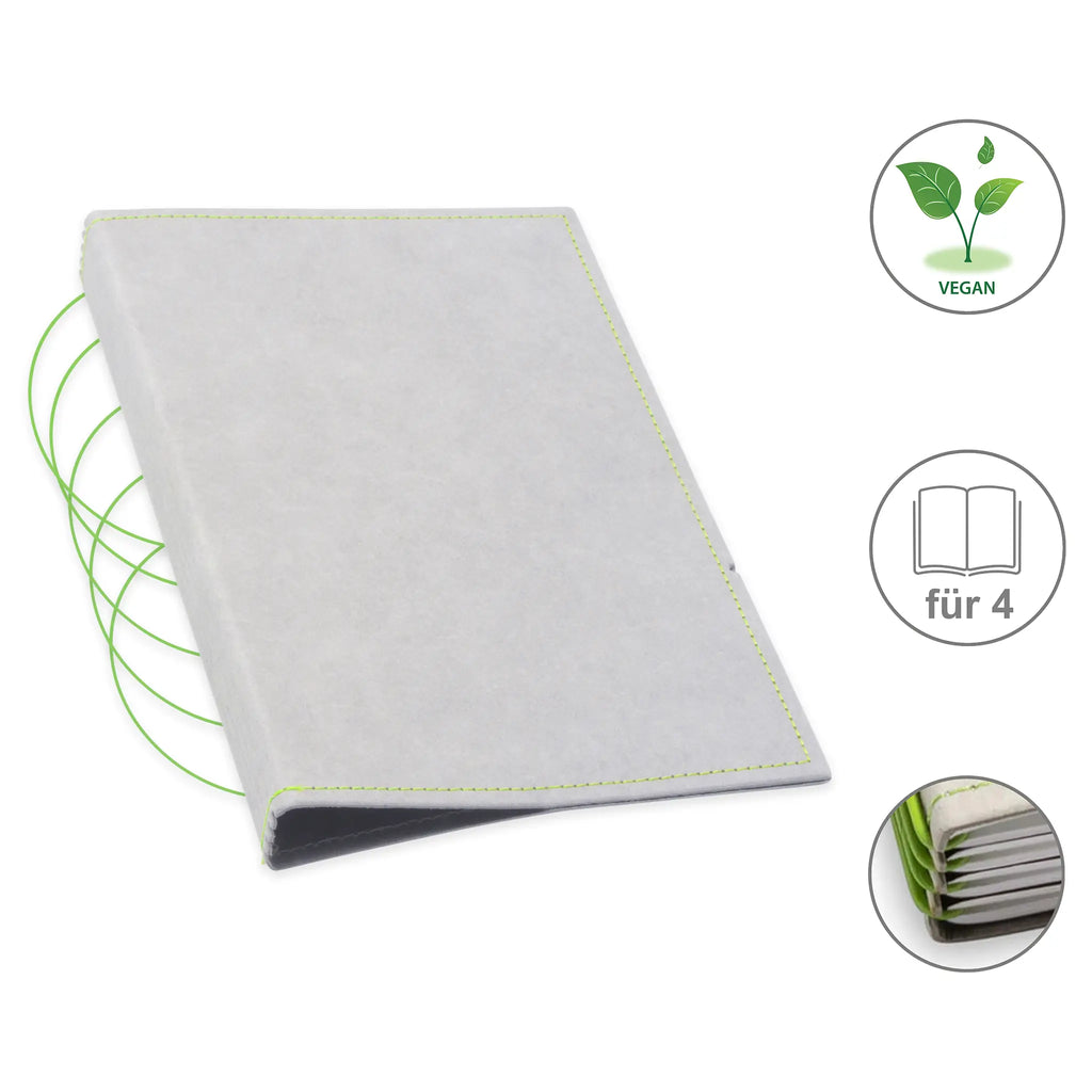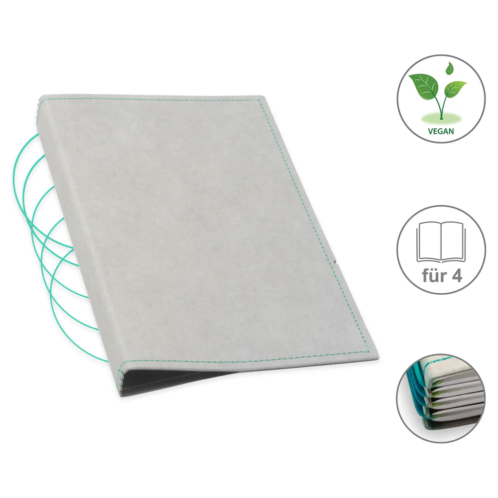 Diese nachhaltige A5 Hülle aus veganem Texon, einem Zellulosefaser-Gemisch, schützt Ihre Dokumente umweltfreundlich und langlebig. Der wechselbare Inhalt erlaubt Ihnen maximale Flexibilität, während die Hülle selbst erhalten bleibt. Die farbigen Elastix-Bänder und die dekorative Ziernaht verleihen ihr einen frischen, peppigen Look.