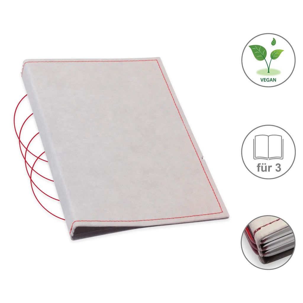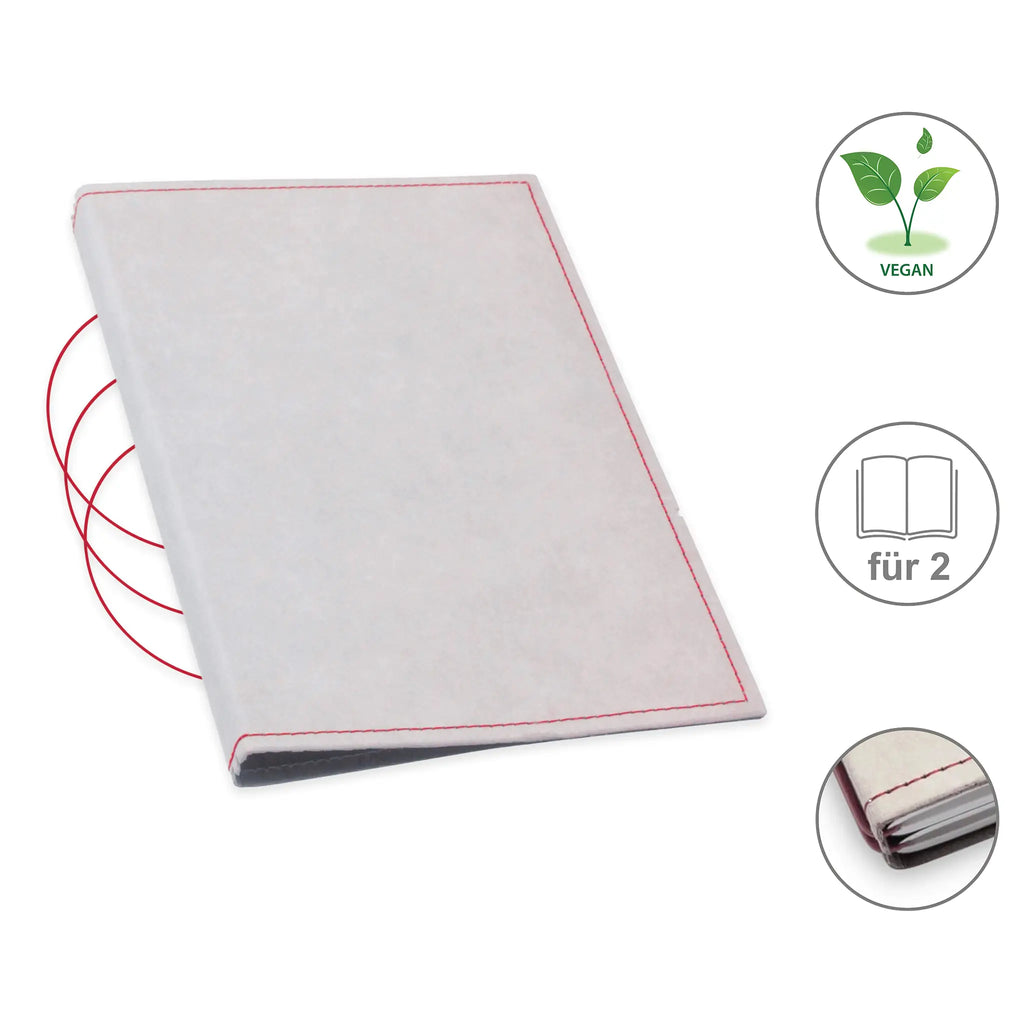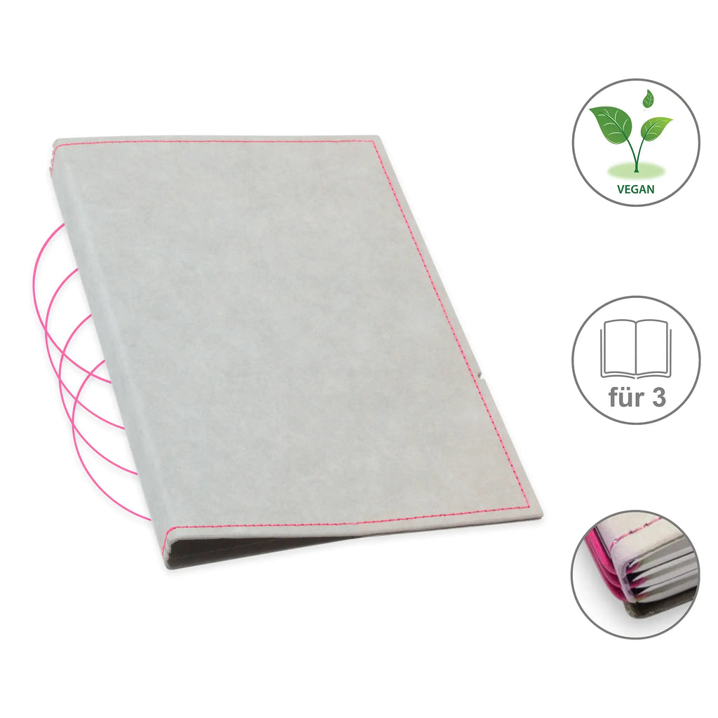 Diese nachhaltige A5 Hülle aus veganem Texon, einem Zellulosefaser-Gemisch, schützt Ihre Dokumente umweltfreundlich und langlebig. Der wechselbare Inhalt erlaubt Ihnen maximale Flexibilität, während die Hülle selbst erhalten bleibt. Die farbigen Elastix-Bänder und die dekorative Ziernaht verleihen ihr einen frischen, peppigen Look.