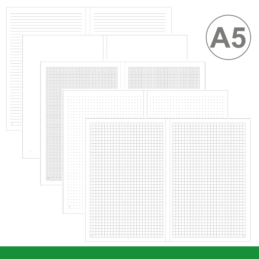 Unsere A5 Notizhefte ergänzen perfekt unsere Bücher und sind in zwei Varianten erhältlich: Die 80 g/m² Varianten aus unserem eigenen LumeX Papier bieten mikroperforierte Seiten mit Seitennummerierung für flexibles und organisiertes Schreiben. Die stabileren Notizhefte mit 120 g/m² sind unperforiert und werden einzeln verpackt. So finden Sie genau das Notizheft, das zu Ihren Bedürfnissen passt.