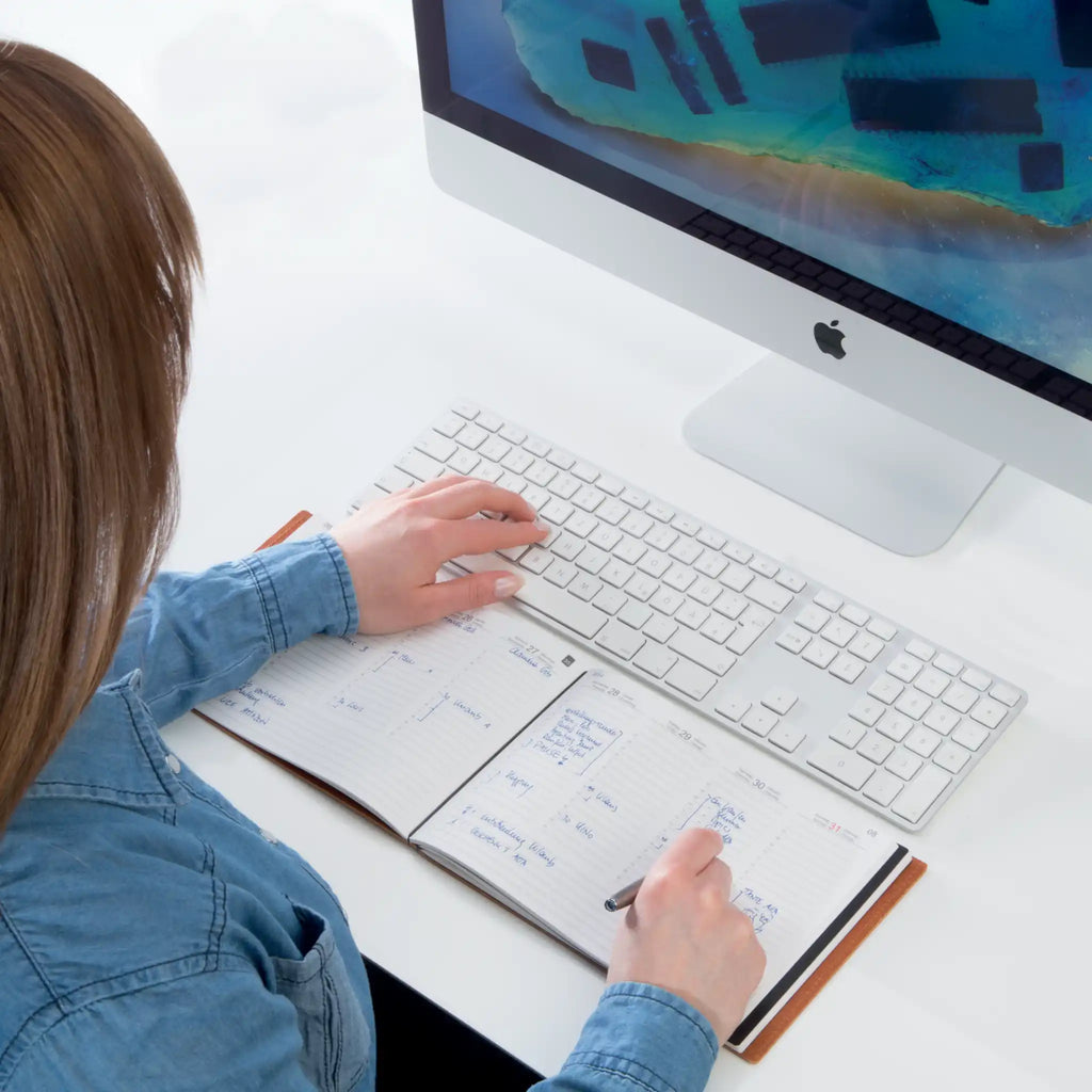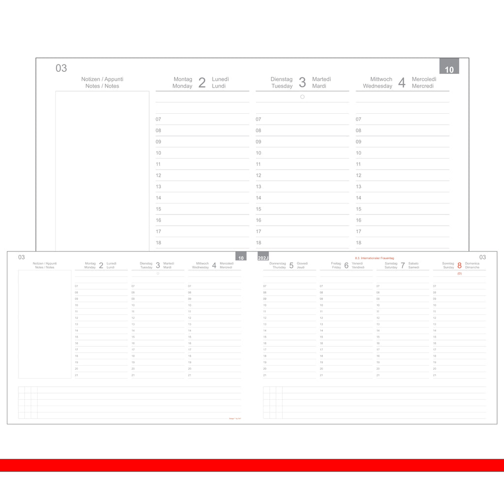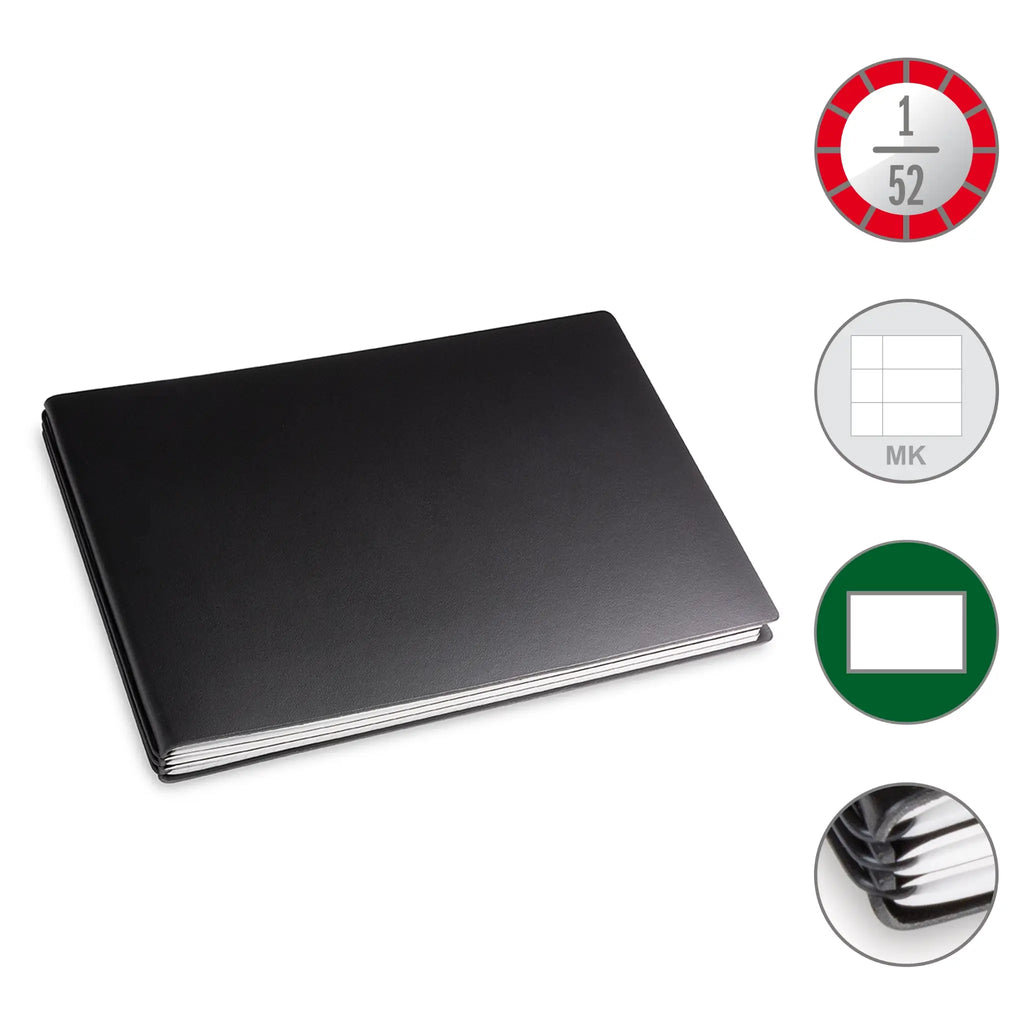 Der A5+ Quer Terminplaner 2026 im Komplettpaket bietet Ihnen mit seinem Wochenkalender eine klare Struktur für Ihre Termine. Ergänzt wird es durch Blanko-Notizeinlage, welche Ihnen ausreichend Platz für persönliche Notizen und kreative Skizzen gibt. Dank des Panoramaformats findet der Planer vor Ihrer Tastatur bequem Platz und erleichtert so das effiziente Arbeiten. Ideal, um Ihren Alltag und Beruf übersichtlich und stressfrei zu organisieren.
