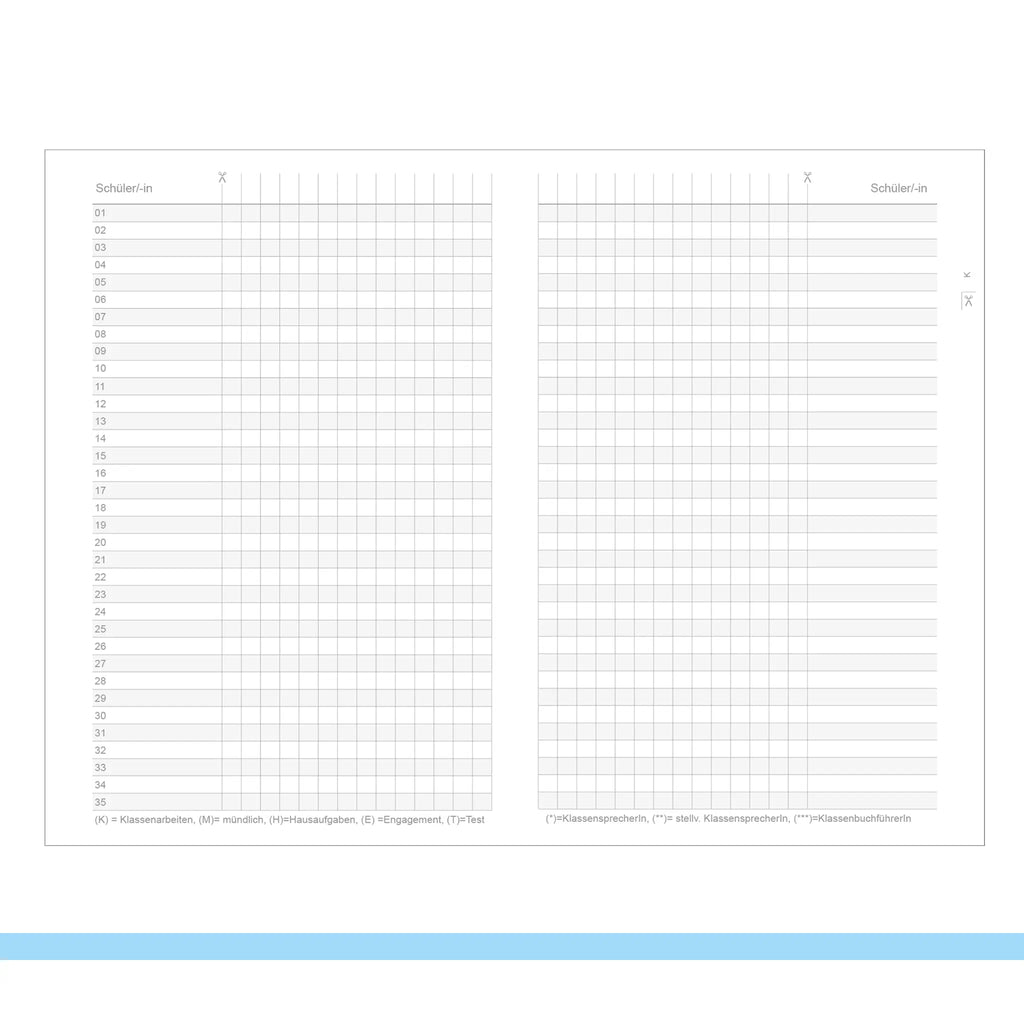 Das Set enthält eine praktische Hülle, einen Wochenkalender von August bis August bestehend aus 2 Heften, sowie eine umfangreiche Lehrereinlage mit Stundenplänen, Jahresplänen, Schülerlisten und einer Seite für wichtige Daten. Ergänzt wird das Paket durch eine linierte Notizeinlage, die Raum für persönliche Notizen lässt.