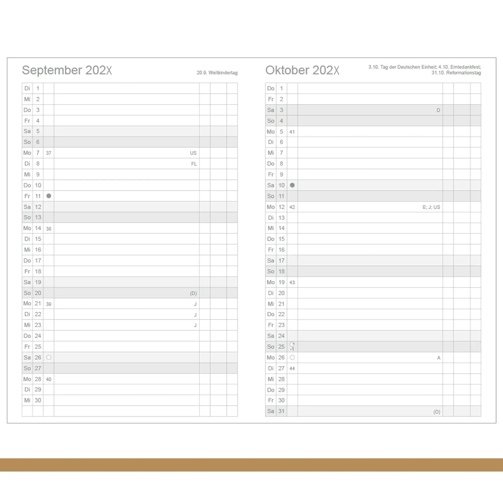 jahresungebundener Faltplaner, der sich durch sein kompaktes Format