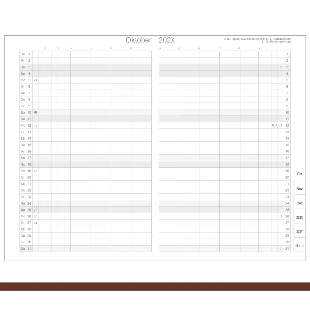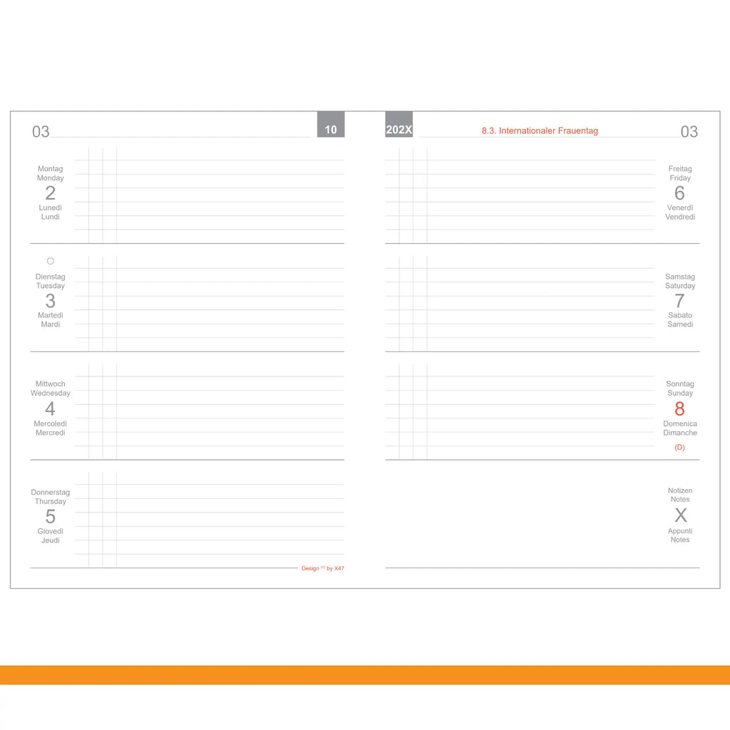 Der Wochenkalender Classic bietet eine klare und bewährte Struktur: eine Woche auf zwei Seiten.
