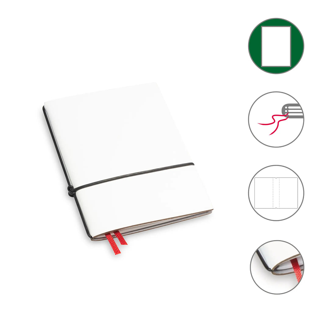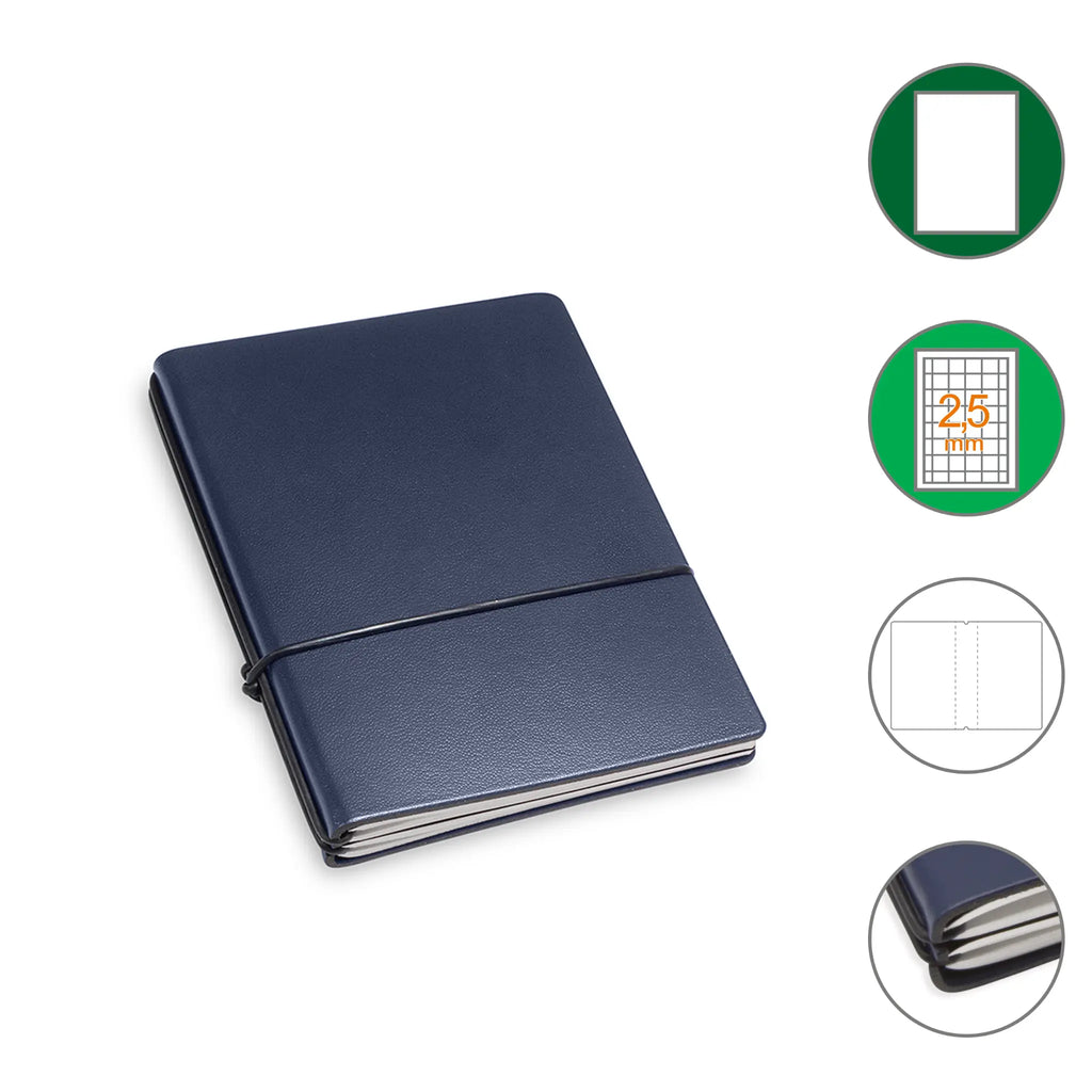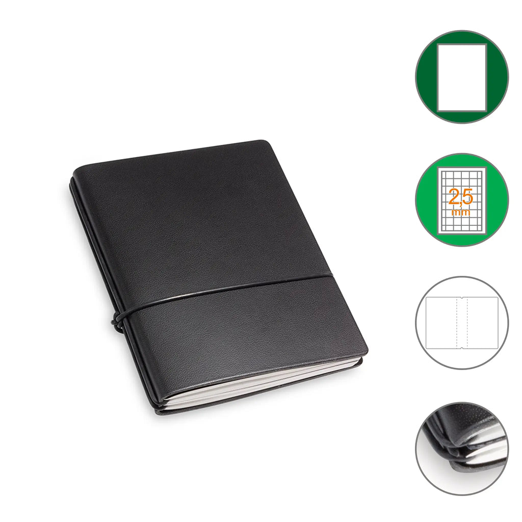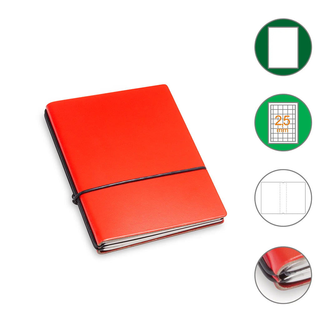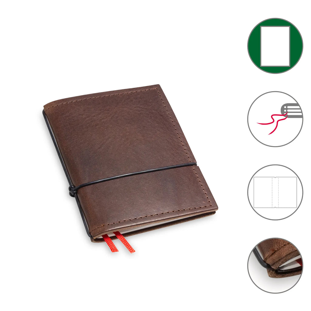 Dieses äußerst kompakte A7 Notizbuch passt problemlos in Gesäß- oder Hemdtasche und ist somit ideal für den mobilen Gebrauch. Wählen Sie zwischen einer oder zwei Einlagen, um Ihren individuellen Bedürfnissen gerecht zu werden. Perfekt, um Gedanken und wichtige Notizen jederzeit griffbereit zu halten.