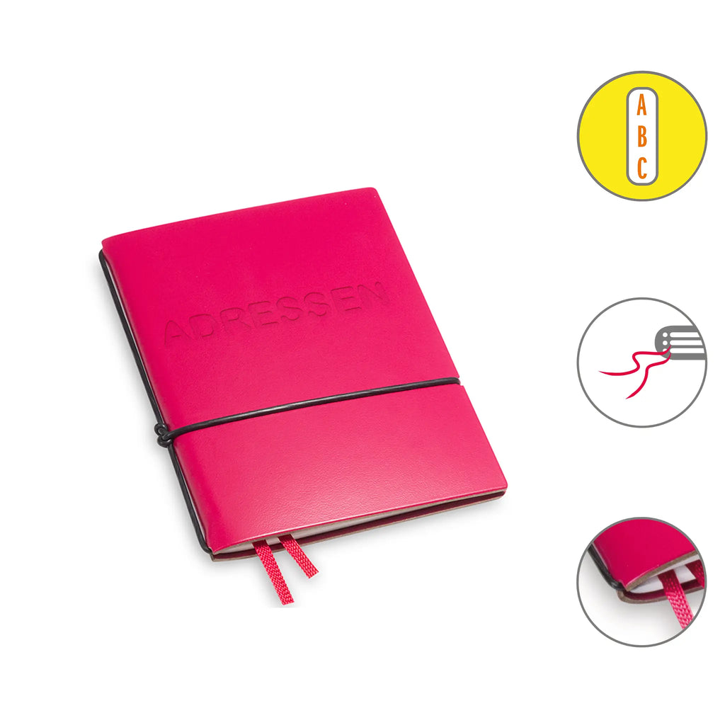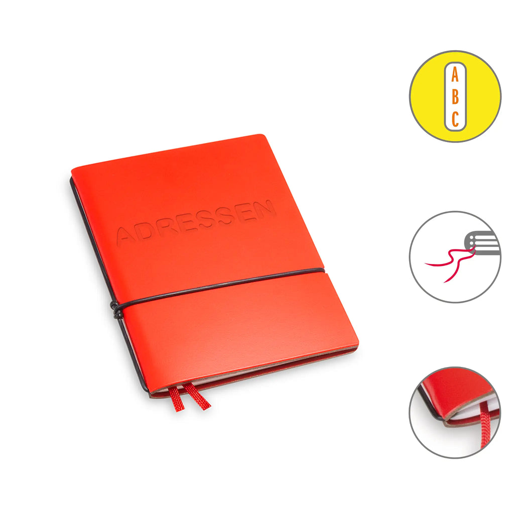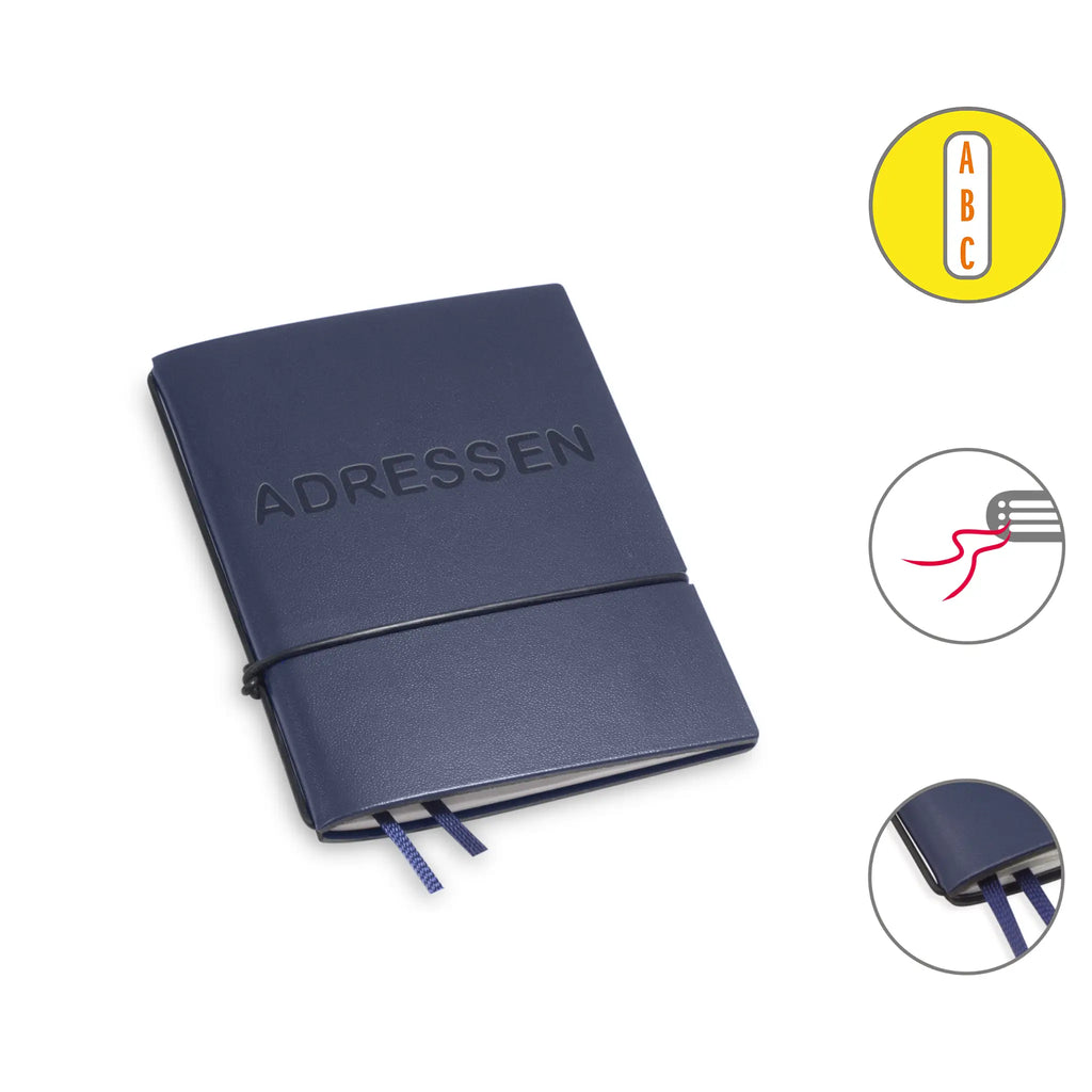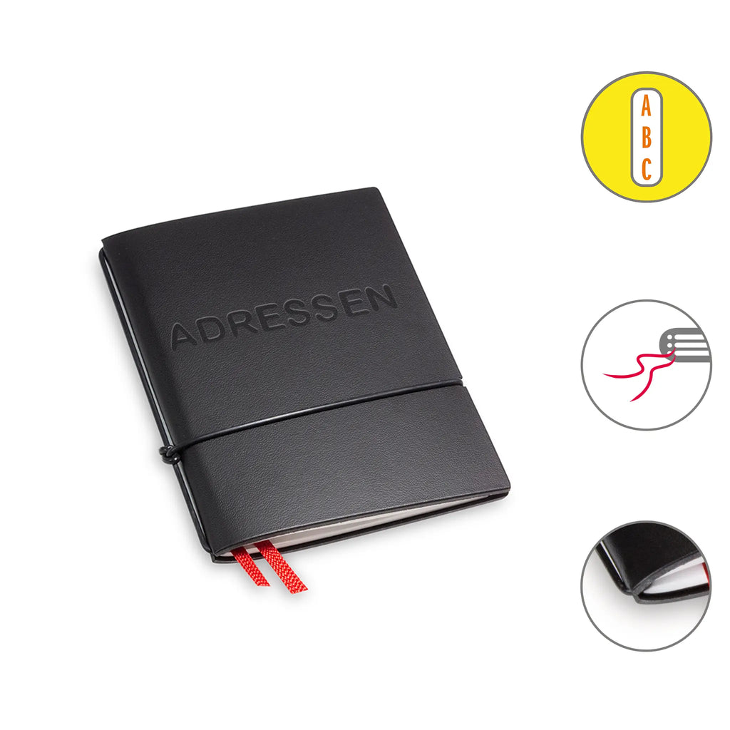 Das A7 Adressbuch ist Ihr praktischer Begleiter für alle wichtigen Kontakte. Die schlichte, elegante Hülle mit geprägter Adressen-Aufschrift schützt Ihre Notizen stilvoll – wahlweise im klassischen "kleinen Schwarz" oder in einer anderen Farbe Ihrer Wahl. So behalten Sie stets den Überblick über Ihre Adressen, ob zu Hause, im Büro oder unterwegs. Dieses kompakte Adressbuch verbindet Funktionalität mit zeitlosem Design und unterstützt Sie dabei, organisiert zu bleiben.