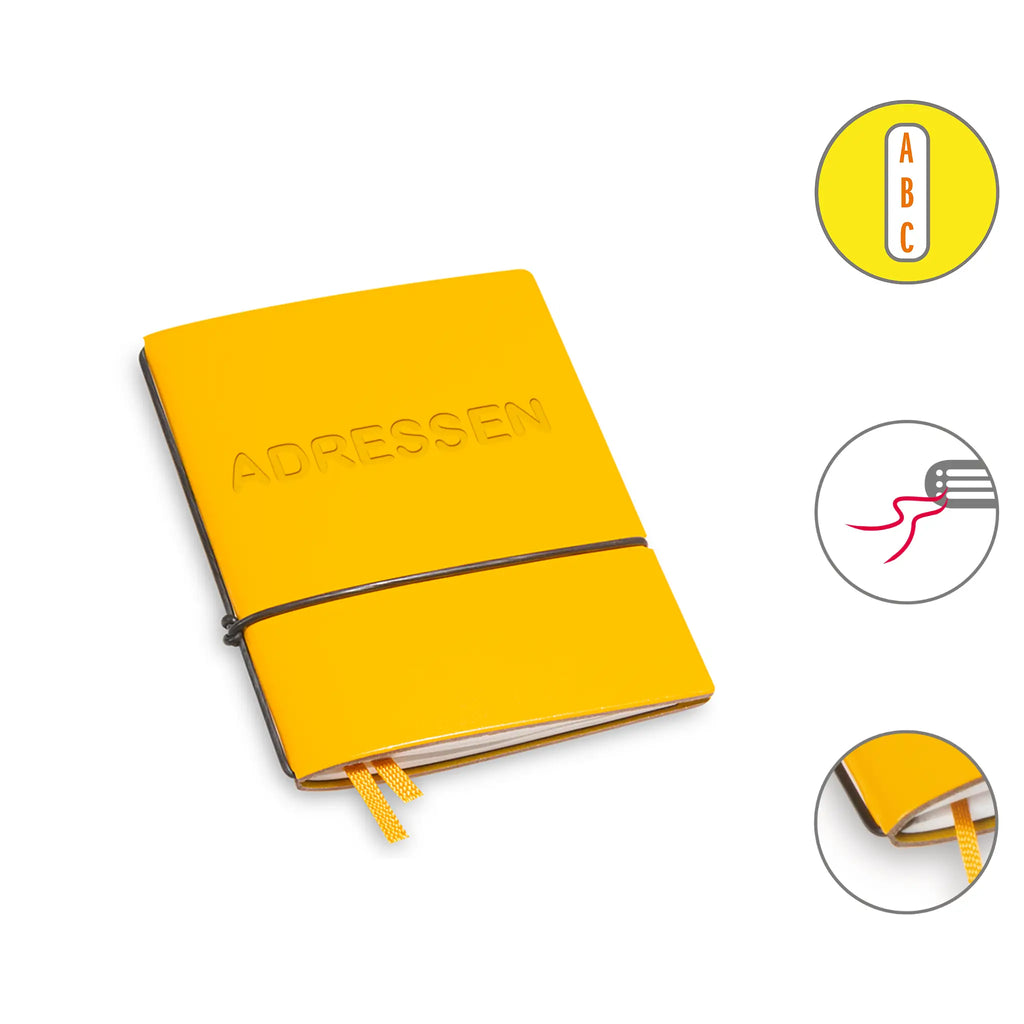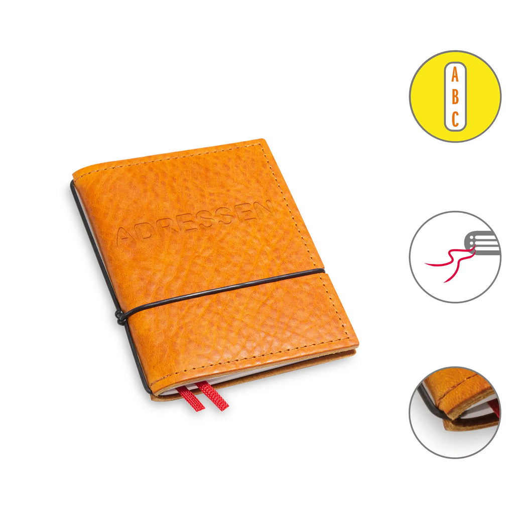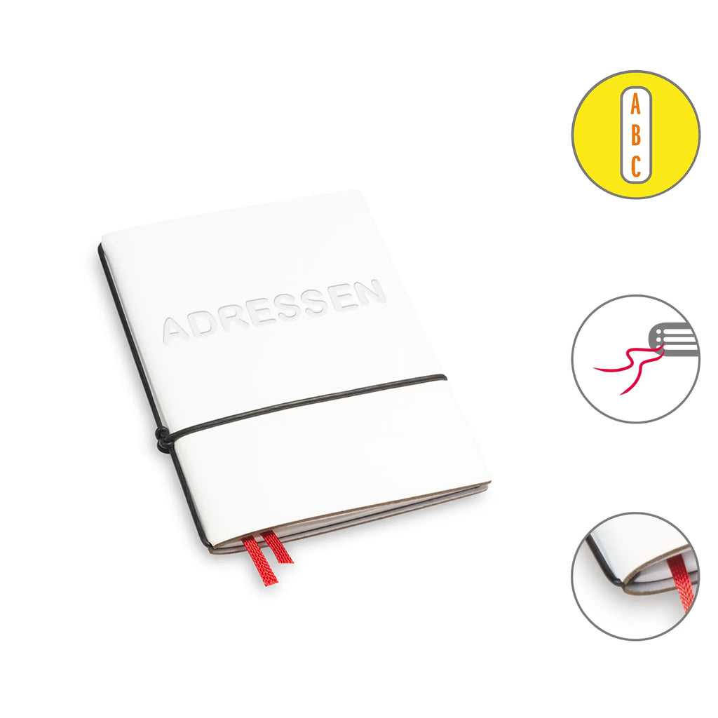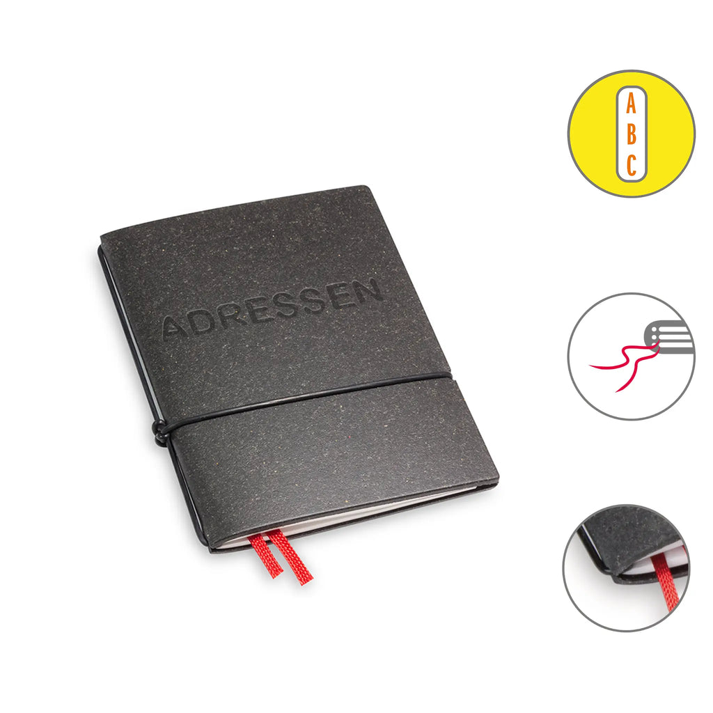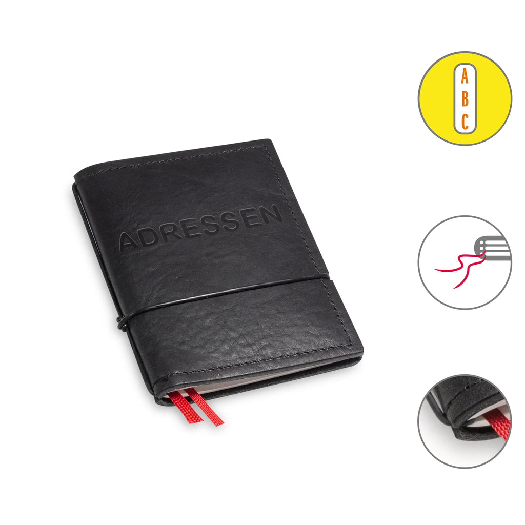 Das A7 Adressbuch ist Ihr praktischer Begleiter für alle wichtigen Kontakte. Die schlichte, elegante Hülle mit geprägter Adressen-Aufschrift schützt Ihre Notizen stilvoll – wahlweise im klassischen "kleinen Schwarz" oder in einer anderen Farbe Ihrer Wahl. So behalten Sie stets den Überblick über Ihre Adressen, ob zu Hause, im Büro oder unterwegs. Dieses kompakte Adressbuch verbindet Funktionalität mit zeitlosem Design und unterstützt Sie dabei, organisiert zu bleiben.