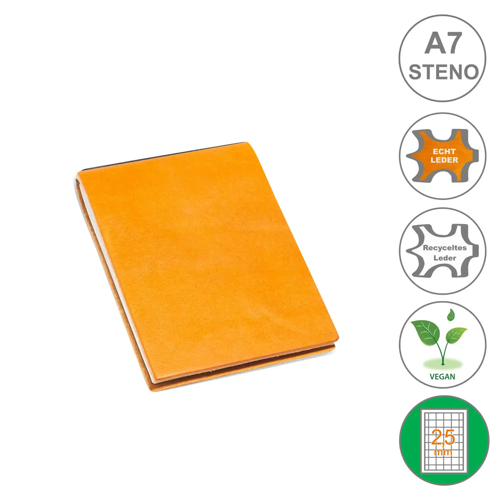 Der praktische Begleiter für unterwegs: A7 STENO ist dein kompakter Reporterblock, der mühelos in jede Tasche passt. Perfekt für schnelle Notizen zwischendurch – ob im Büro, in der Schule oder unterwegs. Das einzelne Heftchen wird sicher von einem ElastiX gehalten und bleibt immer an seinem Platz. Klein, handlich und zuverlässig, wenn du spontan etwas festhalten möchtest.