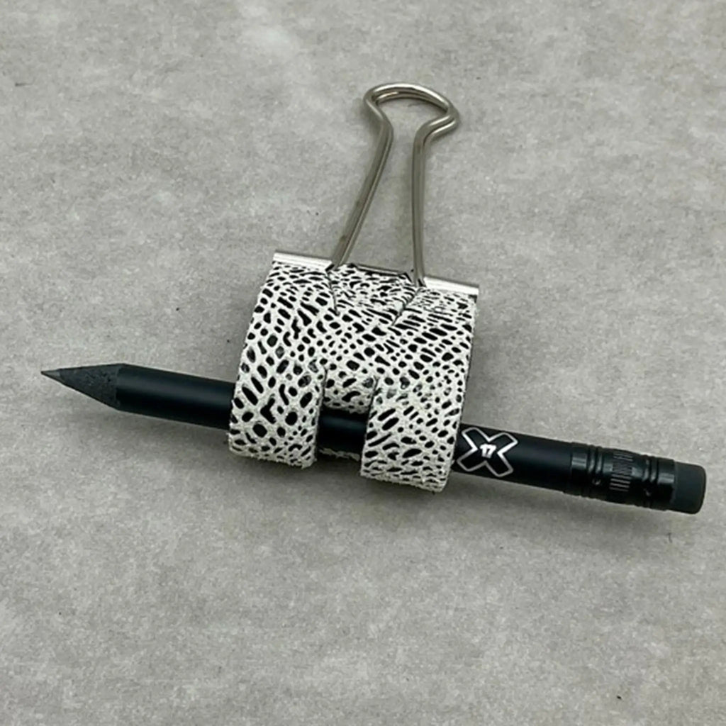 Sloop ist eine patentierte Stiftklemme auf Basis bewährter Foldback-Klammern, die Ihrem Notizbuch sicheren Halt verleiht. Das aufgeklebte Leder bietet Platz für Stifte mit einem Durchmesser von 8 bis 11 mm. Erhältlich in vier Größen – von 25 bis 50 mm Breite – passt Sloop flexibel zu unterschiedlichen Füllhöhen. Mit einem gezielten Spannungsdruck sorgt Sloop für einen festen Verschluss Ihres Notizbuchs, wobei gelegentliche Druckstellen möglich sind. Handmade in Germany, verbindet Sloop Funktionalität mit Qualität.